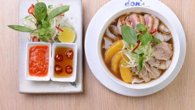 Được biết đến nhiều nhất có lẽ chính là món phở. Tại Don’s Bistro, món “phở vịt” bao gồm hai phần thịt vịt: đùi và ức. Phần đùi được chuẩn bị theo phong cách confit (nấu chín trong mỡ ở nhiệt độ thấp và thời gian lâu); còn phần ức được nấu hơi tái. Những lát cam tươi là yếu tố “bất ngờ” đem lại vị chát đáng giá và màu sắc đương đại cho món ăn truyền thống.
