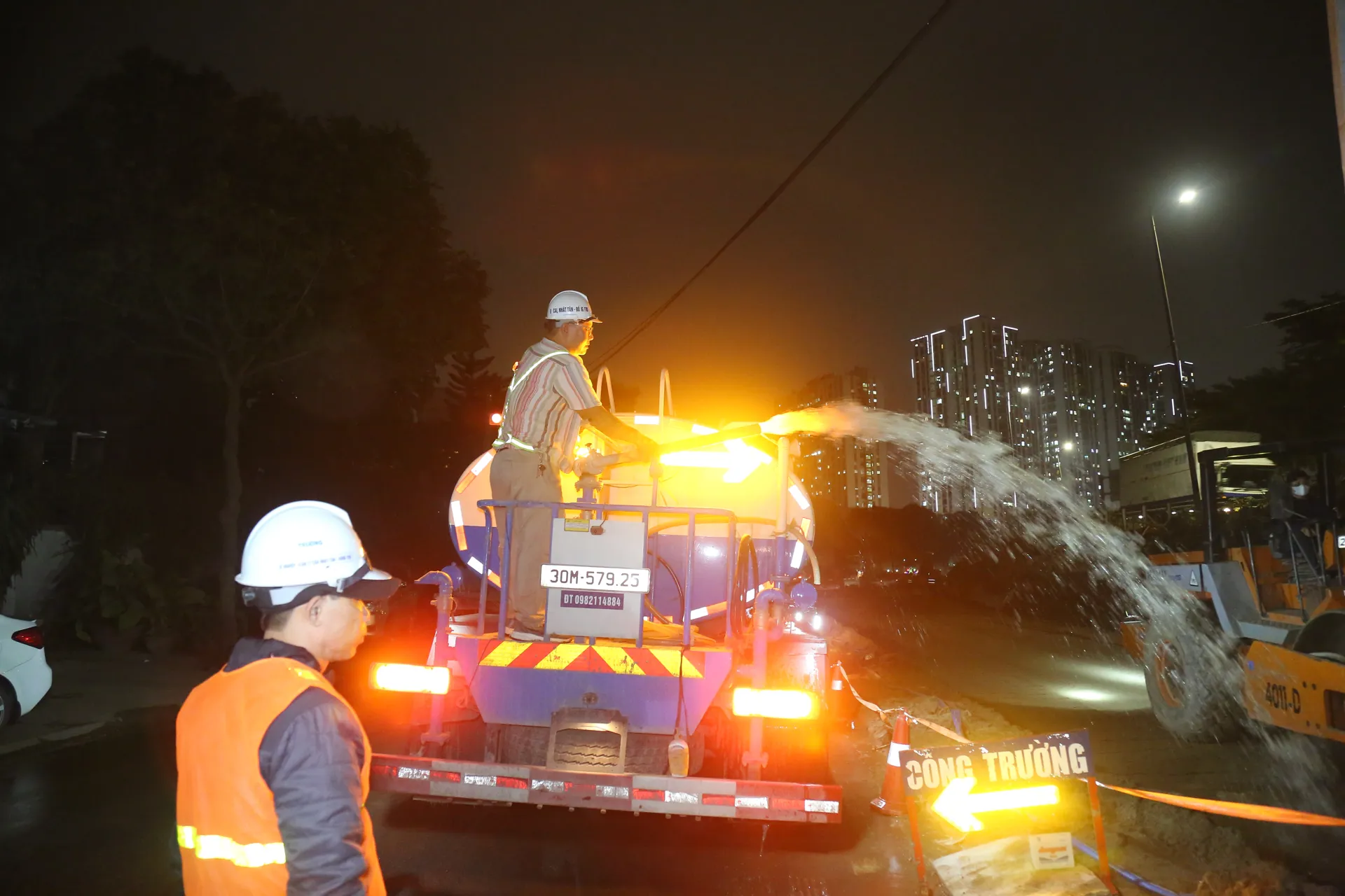 Ngay sau khi UBND TP Hà Nội phát lệnh khẩn cấp, đơn vị thi công đã huy động 6 mũi thi công 24/24.