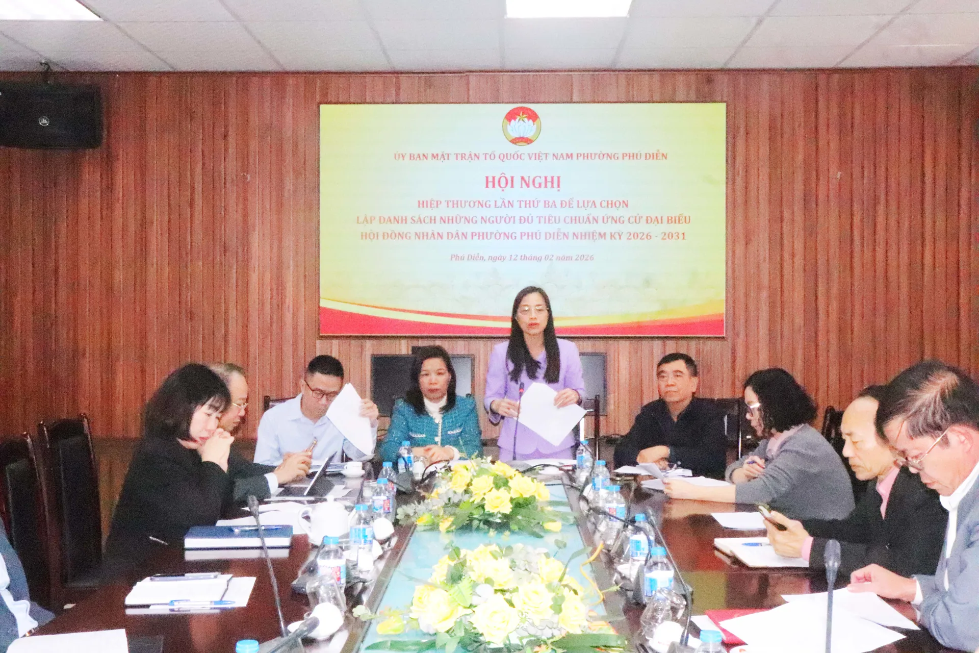 Tại Hội nghị hiệp thương lần thứ Ba, 100% đại biểu có mặt đã nhất trí biểu quyết thông qua các nội dung của hội nghị và danh sách 38 người đủ tiêu chuẩn ứng cử đại biểu HĐND phường Phú Diễn, nhiệm kỳ 2026 - 2031.