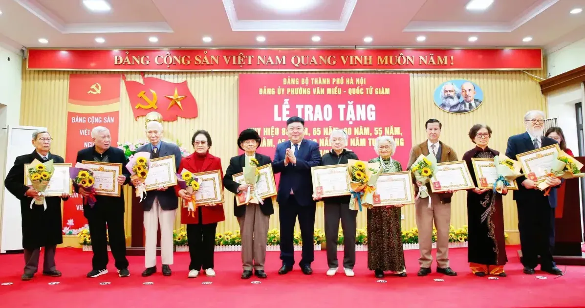 Đợt này, toàn Đảng bộ phường Văn Miếu - Quốc Tử Giám có 112 đảng viên vinh dự được trao tặng Huy hiệu Đảng, trong đó có 1 đồng chí nhận Huy hiệu 80 năm tuổi Đảng; 1 đồng chí nhận Huy hiệu 65 năm tuổi Đảng; 14 đồng chí nhận Huy hiệu 60 năm; 8 đồng chí nhận Huy hiệu 55 năm; 6 đồng chí nhận Huy hiệu 50 năm; 22 đồng chí nhận Huy hiệu 45 năm; 34 đồng chí nhận Huy hiệu 40 năm và 26 đồng chí nhận Huy hiệu 30 năm tuổi Đảng.