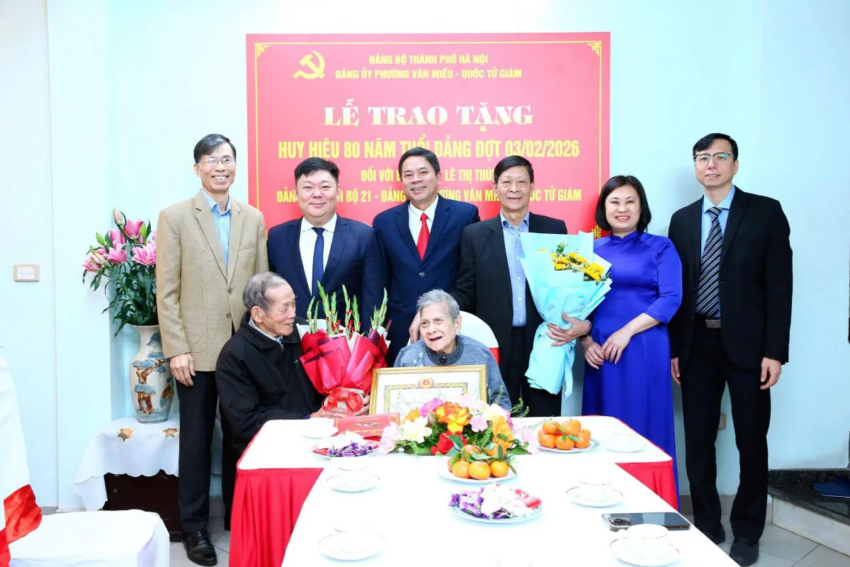 Sáng cùng ngày, Đảng ủy phường Văn Miếu - Quốc Tử Giám đã tổ chức đoàn công tác đến nhà riêng trao Huy hiệu Đảng cho đồng chí Lê Thị Thúy - đảng viên vinh dự nhận Huy hiệu 80 năm tuổi Đảng. Đây là sự quan tâm, thể hiện tình cảm, trách nhiệm và sự trân trọng của cấp ủy đối với các đảng viên cao tuổi, đảng viên lão thành.
