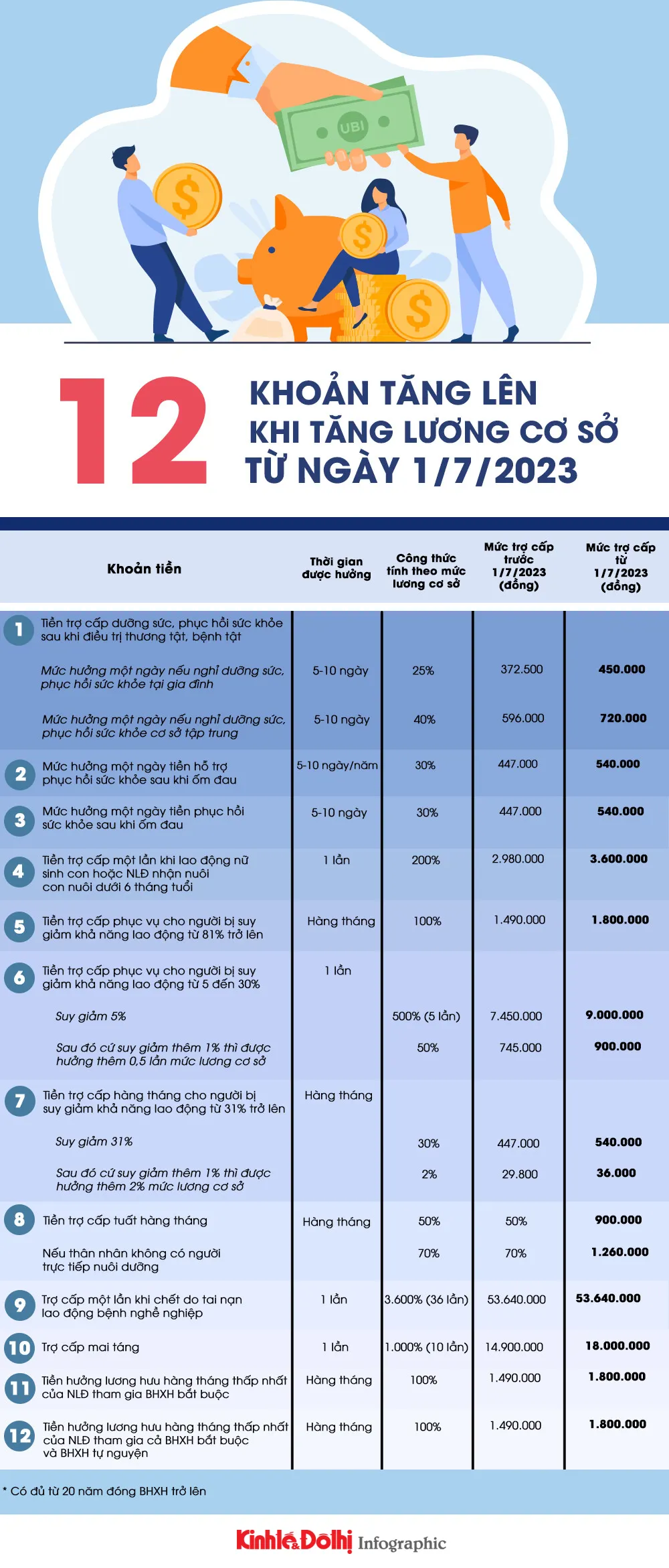 12 khoản tiền tăng lên khi tăng lương cơ sở từ ngày 01/7/2023