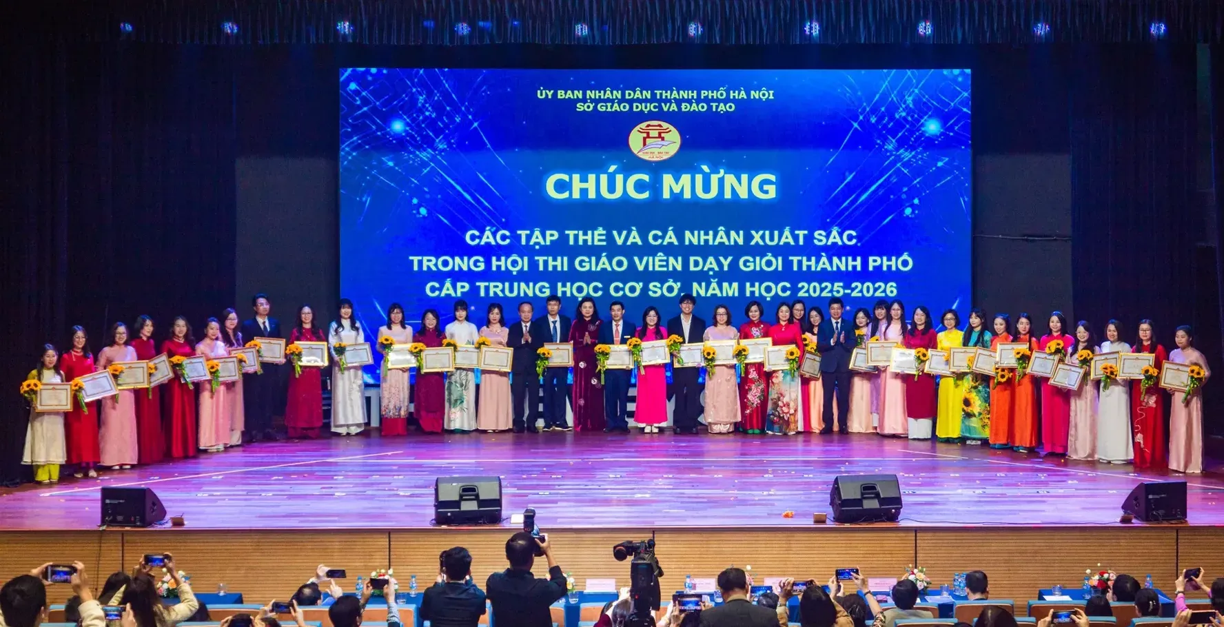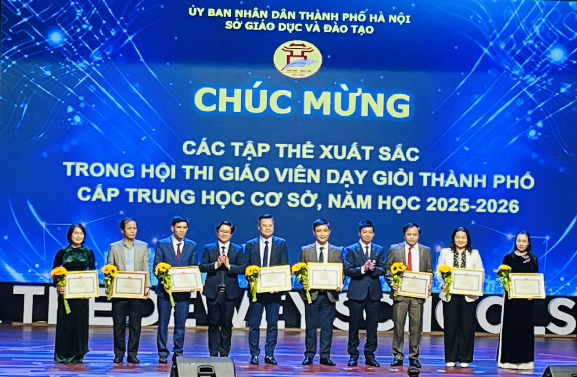 Hội thi giáo viên dạy giỏi cấp THCS TP Hà Nội năm học 2025 - 2026 diễn ra thành công tốt đẹp, tạo hiệu ứng lan tỏa tích cực trong toàn ngành Giáo dục Thủ đô. Tại hội nghị, Sở GD&ĐT Hà Nội đã trao thưởng 180 giáo viên đoạt giải, trong đó có 37 giải Nhất. Ngoài ra, Sở cũng khen thưởng 8 tập thể xuất sắc và 21 tập thể có thành tích tốt trong công tác tổ chức hội thi.