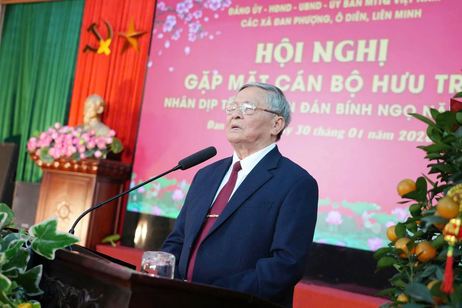 Bí thư Đảng ủy, Chủ tịch HĐND xã Đan Phượng Nguyễn Gia Hiển mong các cán bộ chủ chốt đã nghỉ hưu trên địa bàn tiếp tục có những ý kiến tham gia góp ý xây dựng Đảng, hệ thống chính trị vững mạnh, phát triển kinh tế - xã hội; góp phần xây dựng 3 xã Đan Phượng, Liên Minh, Ô Diên ngày càng phát triển và đổi mới.