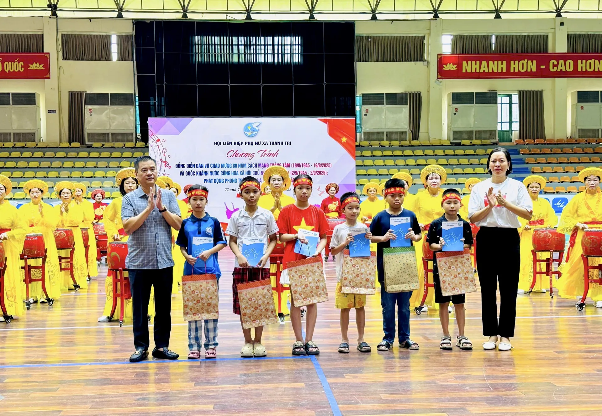 Cũng tại chương trình, Hội LHPN xã Thanh Trì đã trao 10 suất quà gồm: 10 cuốn vở, bút viết và 500.000 đồng tiền mặt cho 10 trẻ em mồ côi trên địa bàn xã. Đây là nguồn động viên kịp thời, thể hiện tấm lòng nhân ái, sự sẻ chia của tổ chức Hội và cộng đồng xã hội dành cho các cháu thiếu may mắn, giúp các em vững tin, cố gắng vượt qua khó khăn, tiếp tục phấn đấu học tập tốt, sau này trở thành người có ích cho gia đình và xã hội.