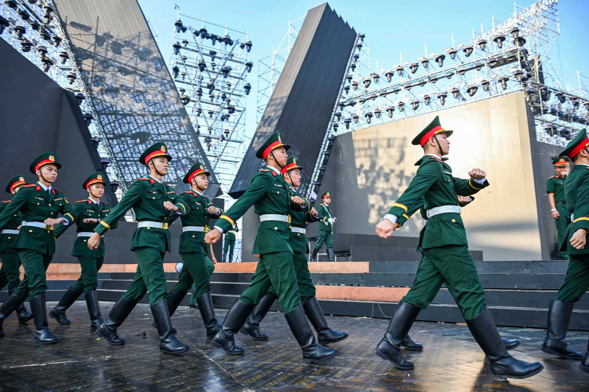 Kinhtedothi - Sáng 8/8, 68 quân nhân đại diện cho Quân đội Nhân dân Việt Nam từng tham gia Lễ duyệt binh kỷ niệm 80 năm Ngày Chiến thắng trong Chiến tranh vệ quốc vĩ đại, diễn ra trên Quảng trường Đỏ Matxcơva (Nga) đã luyện tập cho chương trình "Tổ quốc trong tim".