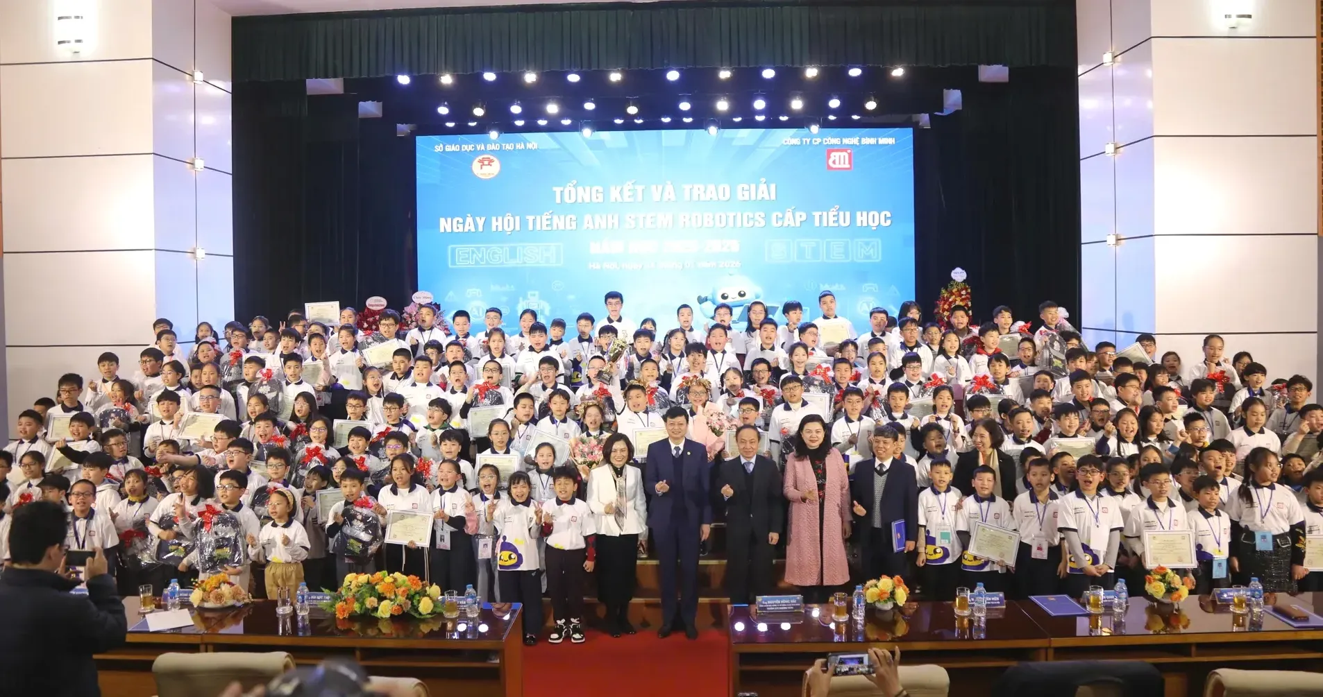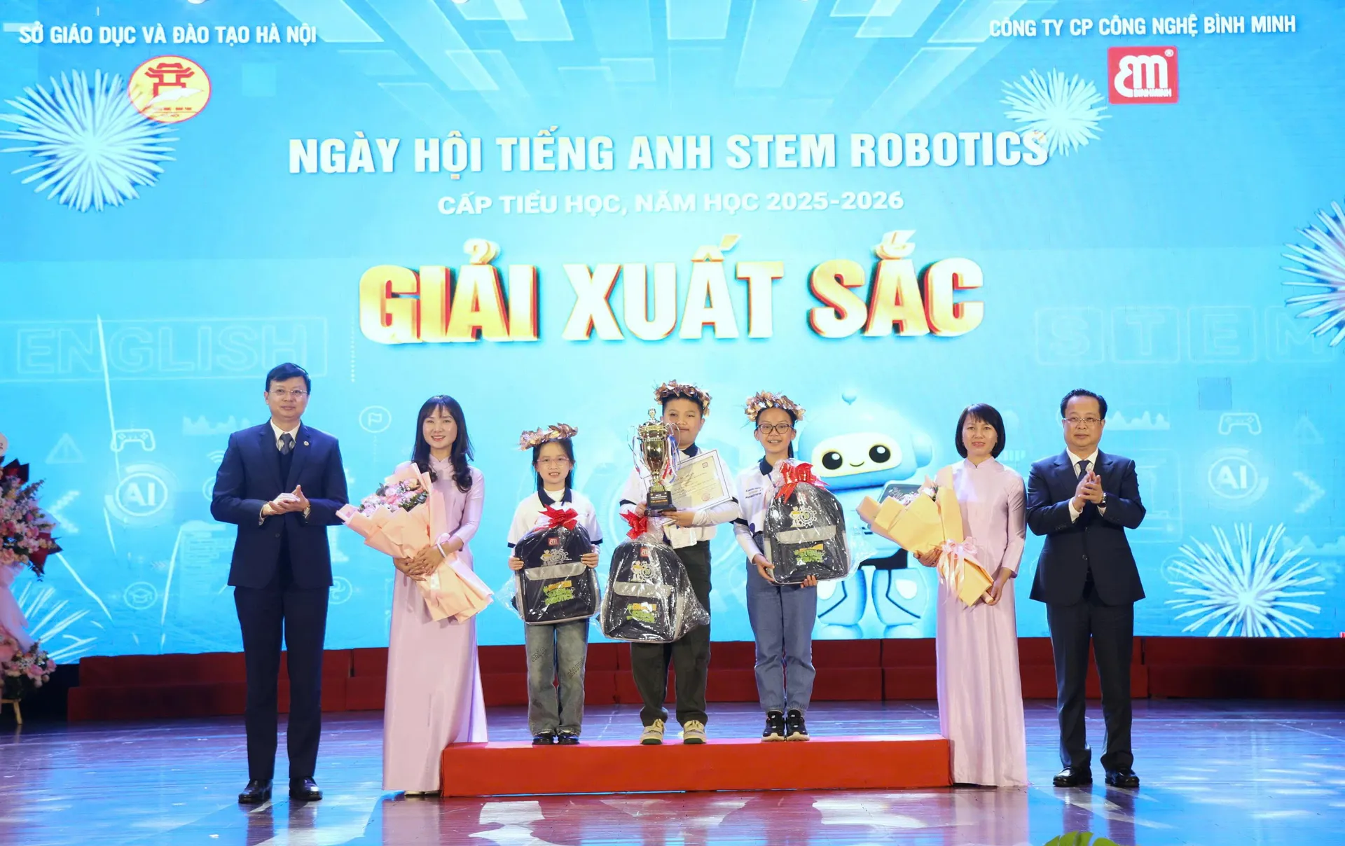 Chương trình “Ngày hội tiếng Anh STEM Robotics” năm học 2025 - 2026 được Sở GD&ĐT Hà Nội phối hợp cùng Công ty Cổ phần Công nghệ Bình Minh tổ chức lần đầu tiên ở cấp tiểu học. Đây là mô hình tích hợp tiếng Anh trong các hoạt động khoa học – công nghệ – kỹ thuật – lập trình, góp phần triển khai hiệu quả Đề án đưa tiếng Anh trở thành ngôn ngữ thứ hai trong trường học, đồng thời phù hợp với tinh thần đổi mới sáng tạo và chuyển đổi số được Đảng và Nhà nước ta xác định.