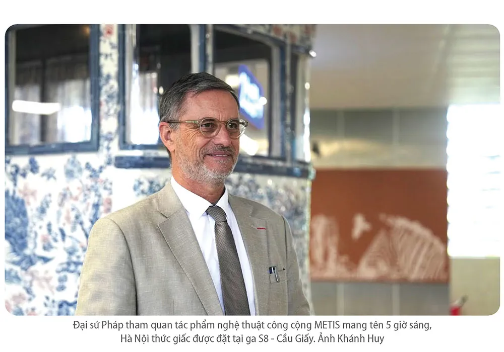 Theo đó, AFD đã tặng thành phố tác phẩm nghệ thuật Metis vào tháng 11/2024 – tượng mô phỏng một đoàn tàu điện đang tan chảy, mang tên “5 giờ sáng, Hà Nội thức giấc”, đặt tại sảnh ga Cầu Giấy của tuyến đường sắt đô thị số 3. Ngoài ra, với sự hỗ trợ của Vùng Île-de-France, AFD cũng đồng hành cùng thành phố xây dựng một tuyến tham quan di sản kiến trúc tại quận Hoàn Kiếm nhằm tôn vinh kiến trúc Pháp.
