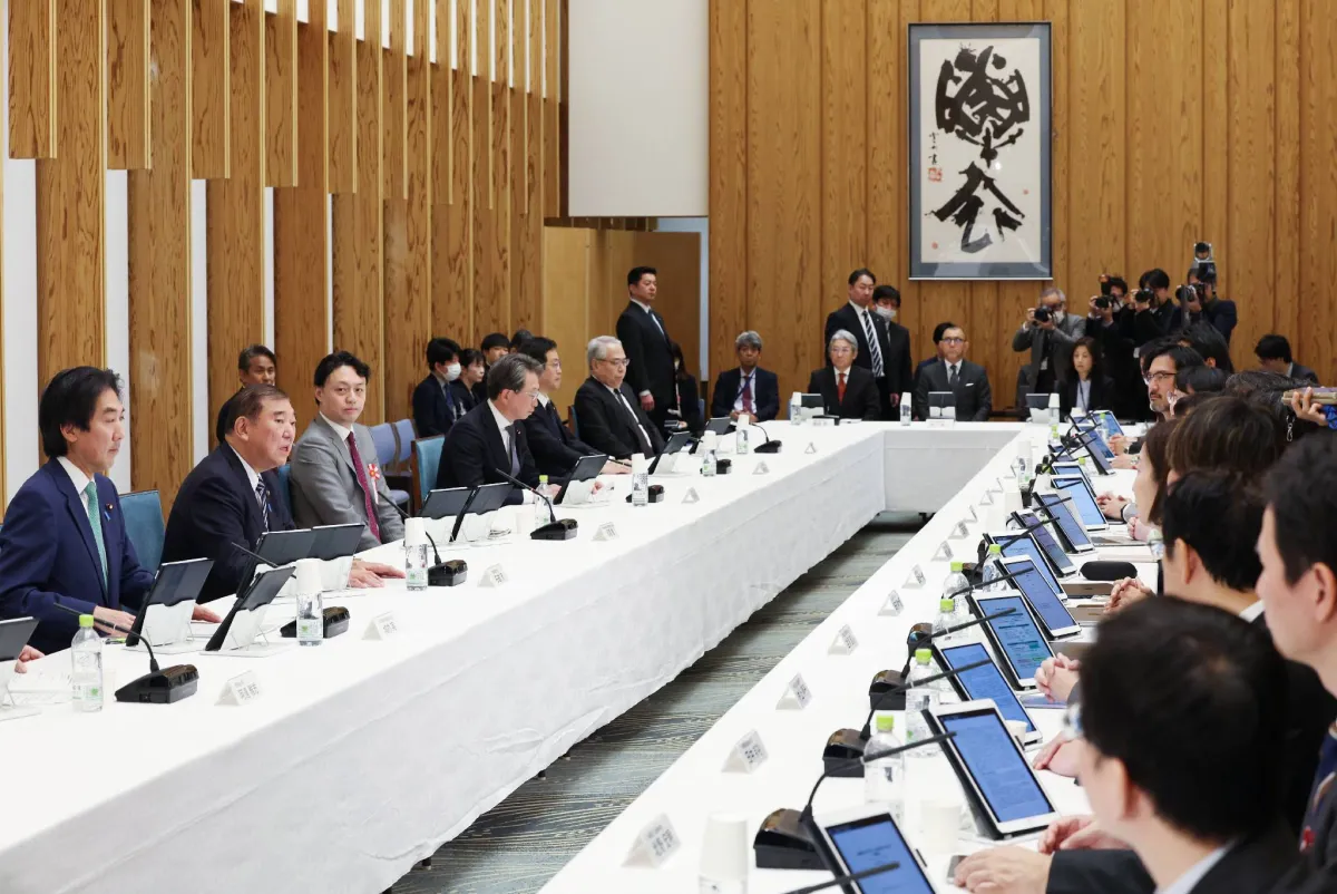 Cựu Thủ tướng Nhật Bản Shigeru Ishiba (thứ hai từ trái sang) phát biểu tại cuộc họp Hội đồng Chiến lược AI tại Văn phòng Thủ tướng hồi tháng 12/2024. Ảnh: JIJI