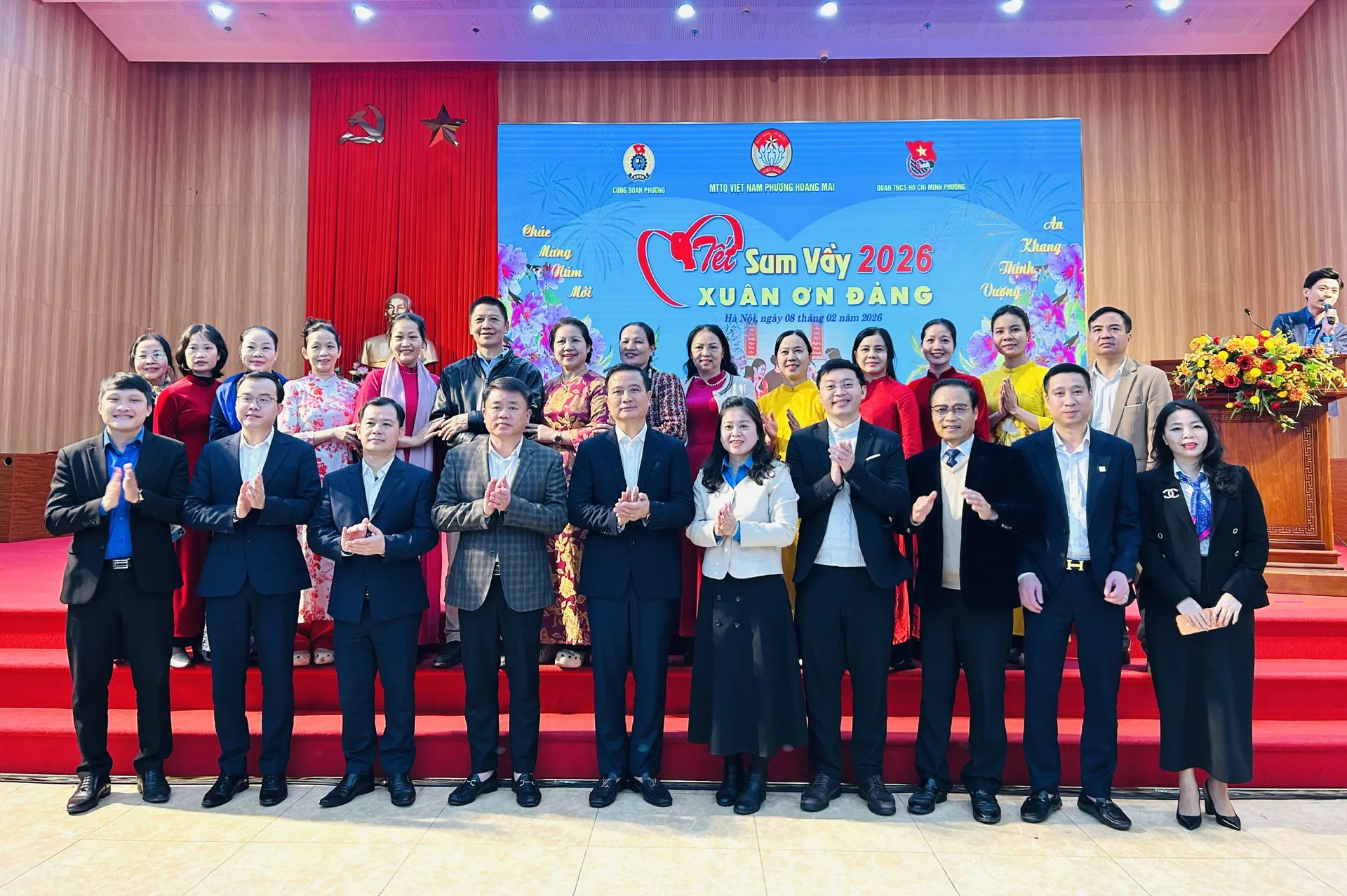 Ngày 8/2, Công đoàn và Đoàn TNCS Hồ Chí Minh phường Hoàng Mai tổ chức chương trình “Tết sum vầy – Xuân ơn Đảng” 2026. Chương trình có sự tham dự của Chủ tịch Liên đoàn Lao động TP Hà Nội Nguyễn Văn Thắng; Ủy viên BCH, Phó Trưởng ban Công tác Đoàn và Thanh Thiếu nhi Ủy ban MTTQ TP Hà Nội Phạm Tấn Phát. Đại biểu phường Hoàng Mai có: Bí thư Đảng ủy, Chủ tịch HĐND phường Nguyễn Xuân Linh; Phó Bí thư Thường trực Đảng ủy phường Nguyễn Công Hiệp, Chủ tịch Ủy ban MTTQ Việt Nam phường Triệu Hải Vân.