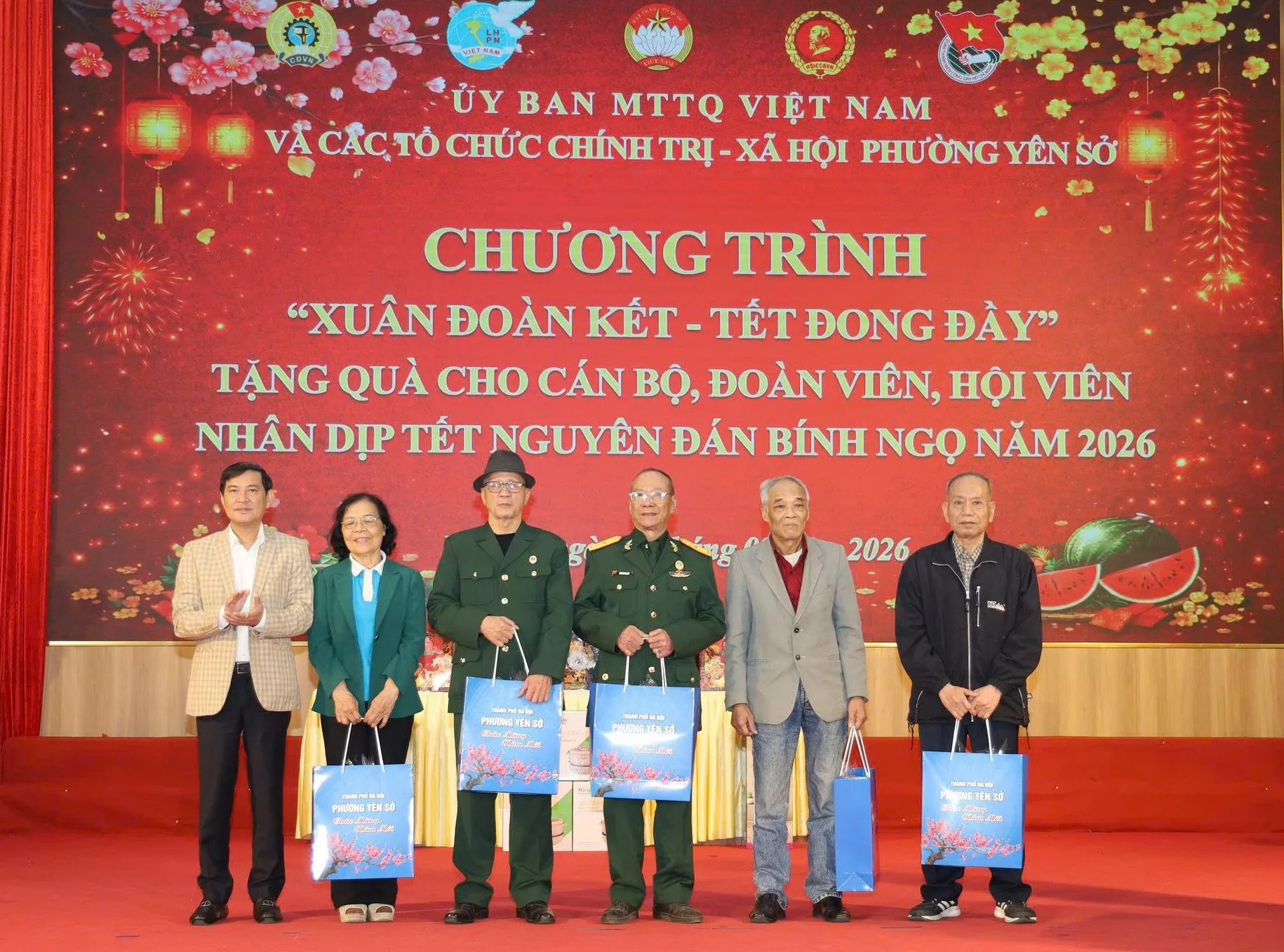 Kinhtedothi - Nhằm thiết thực chăm lo đời sống cán bộ, đoàn viên, hội viên và người lao động có hoàn cảnh khó khăn nhân dịp Tết Nguyên đán Bính Ngọ 2026, ngày 6/2, Ủy ban MTTQ Việt Nam và các tổ chức chính trị - xã hội phường Yên Sở (TP Hà Nội) đã tổ chức chương trình an sinh xã hội ý nghĩa với chủ đề “Xuân đoàn kết – Tết đong đầy”. Chương trình là hoạt động trọng tâm trong chuỗi chăm lo Tết của hệ thống chính trị phường, thể hiện tinh thần đoàn kết, sẻ chia, phát huy truyền thống “tương thân tương ái” tốt đẹp của dân tộc.