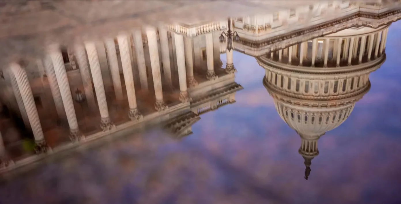 Ảnh phản chiếu mái vòm của Tòa nhà Quốc hội Mỹ. Nguồn: CNBC