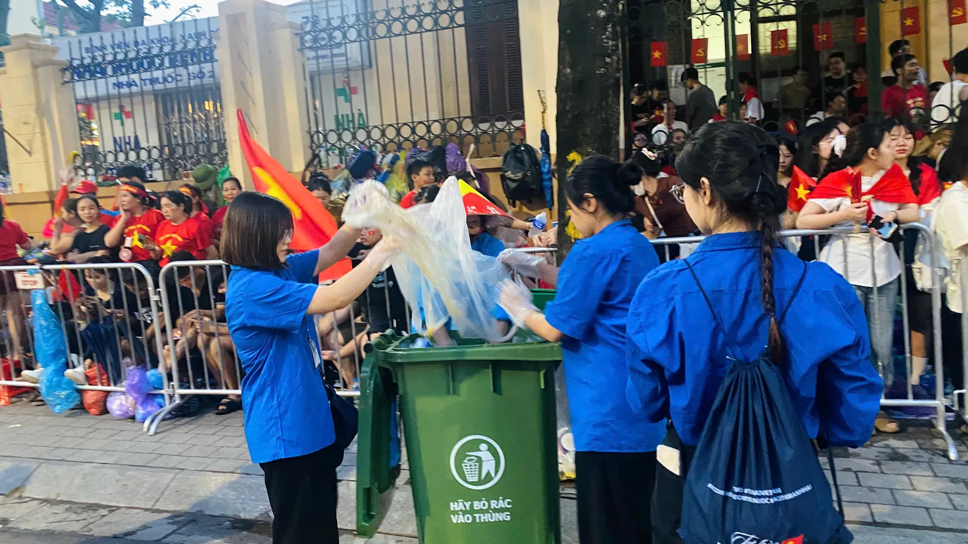 Áo xanh tình nguyện tích cực hỗ trợ vệ sinh môi trường sau lễ sơ duyệt A80