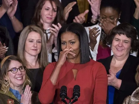 | Đệ nhất phu nhân Michelle Obama xúc động trong bài phát biểu cuối cùng tại Nhà Trắng. |