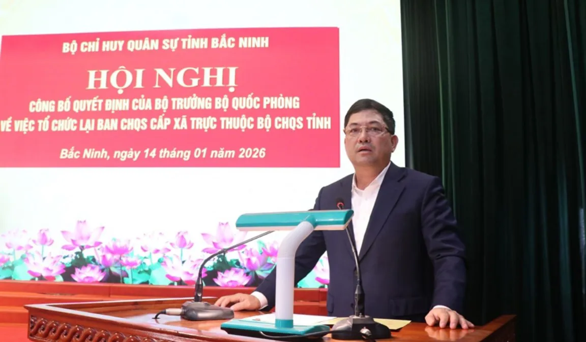 Phát biểu chỉ đạo, ông Nguyễn Hồng Thái, Ủy viên Trung ương Đảng, Bí thư Tỉnh ủy, Bí thư Đảng ủy Quân sự tỉnh Bắc Ninh nhấn mạnh: việc sắp xếp, kiện toàn tổ chức Ban CHQS cấp xã là chủ trương đúng đắn, kịp thời, nhằm xây dựng lực lượng vũ trang địa phương tinh gọn, vững mạnh, hoạt động hiệu lực, hiệu quả, đáp ứng yêu cầu nhiệm vụ bảo vệ Tổ quốc trong tình hình mới.