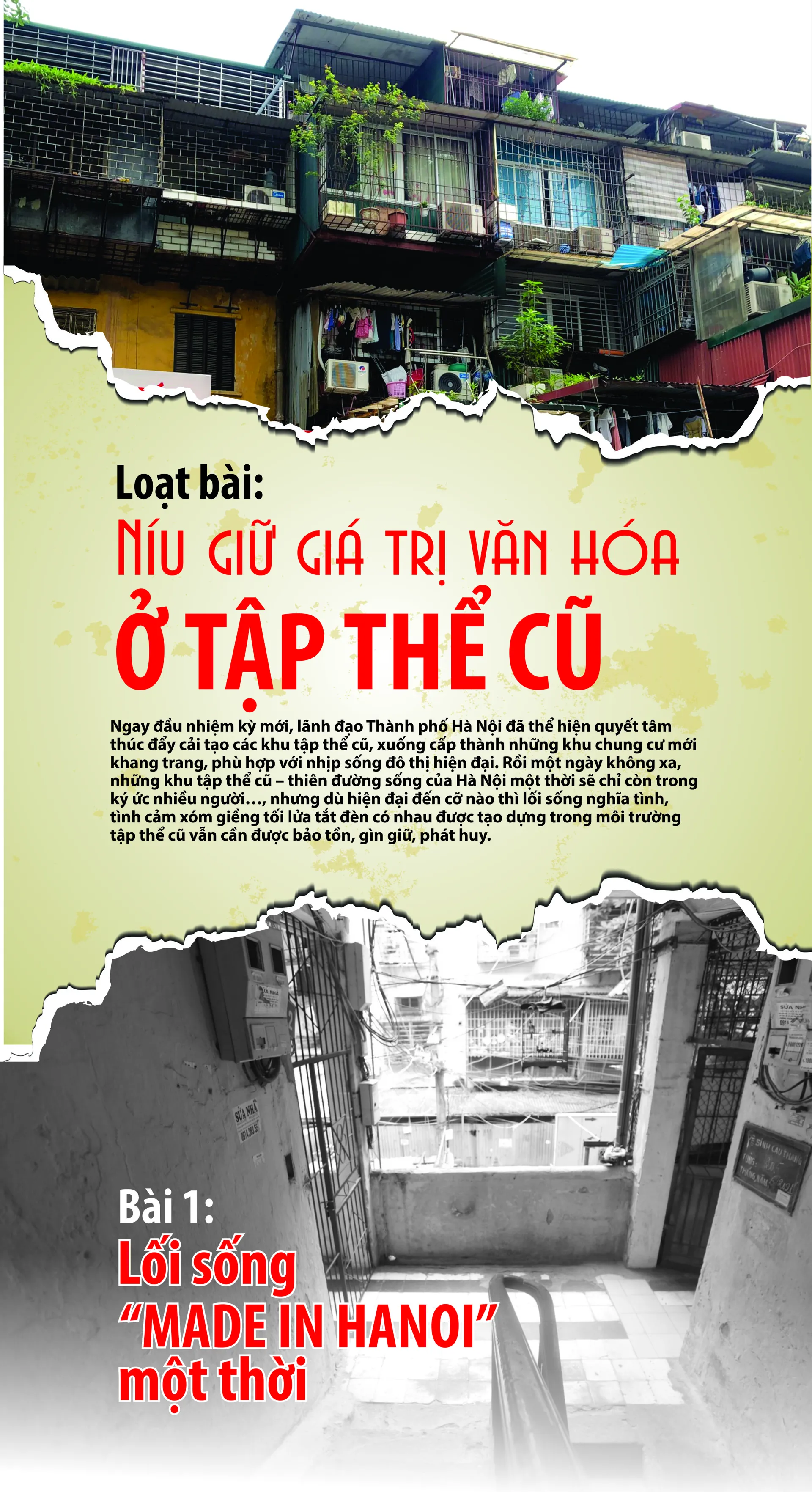 Thế kỷ XXI, Hà Nội đang vươn mình thay đổi mạnh mẽ với hình ảnh những khu đô thị mới, các tòa nhà chung cư hiện đại đang hiện hữu khắp nơi. Thế nhưng, chúng ta cũng dễ dàng bắt gặp những mảng màu trầm mặc, loang lổ nhưng chưa bao giờ phai nhạt của các khu tập thể cũ. Đó là công trình cất giữ những dấu ấn đặc biệt, là di sản của một thời kỳ khó khăn nhưng đáng nhớ.