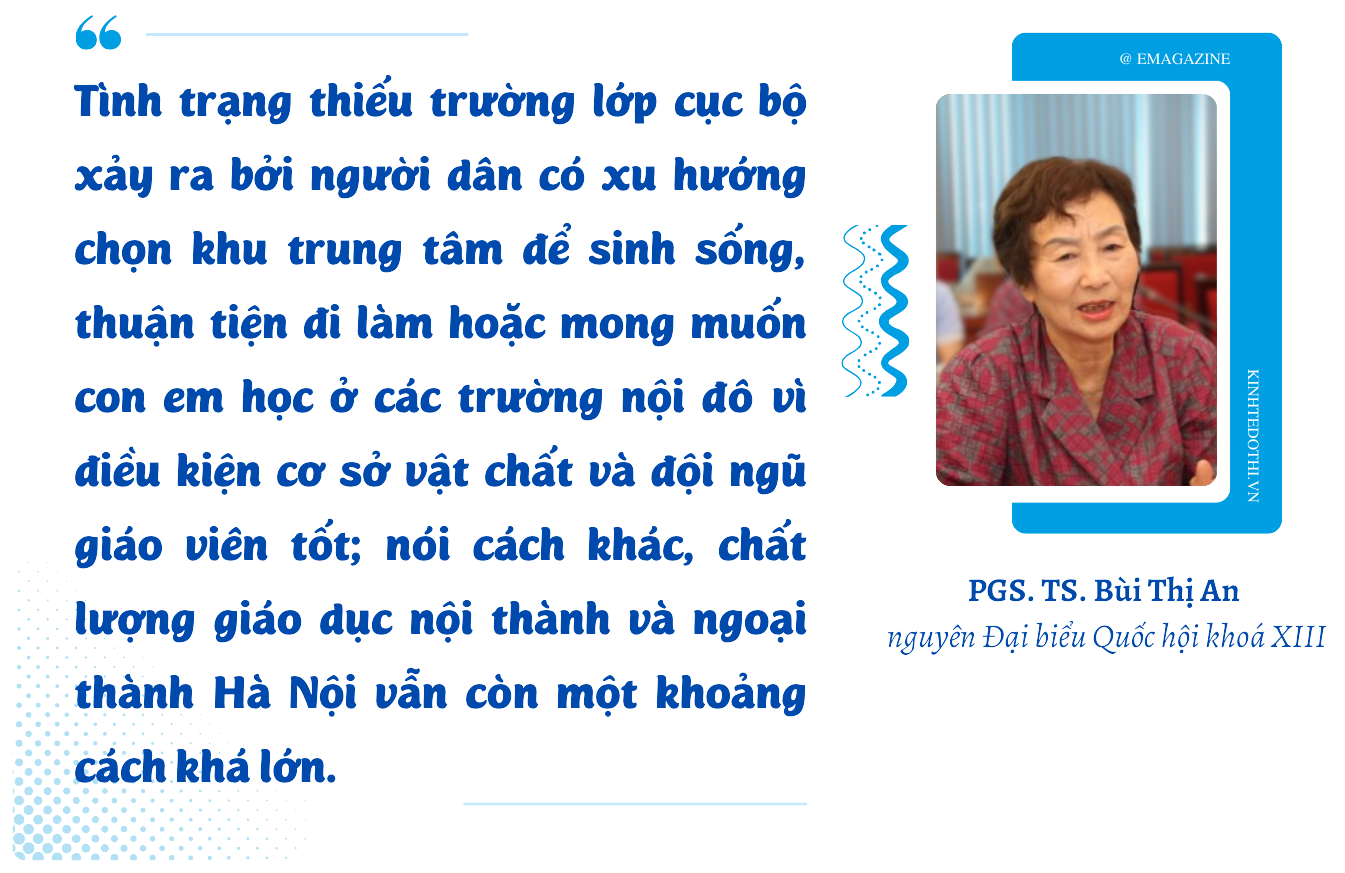 Theo PGS.TS Bùi Thị An (nguyên Đại biểu Quốc hội khoá XIII), Hà Nội là đô thị phát triển, nhiều người dân ở khắp mọi miền tổ quốc về đây lập nghiệp, an cư; chưa kể mỗi năm có hàng triệu sinh viên ra trường ở lại Thủ đô làm việc, sinh sống. Khi dân số cơ học tăng, trẻ em trong độ tuổi đến trường cũng tăng theo.