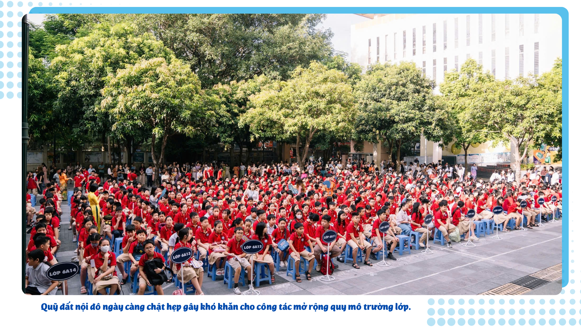 Trong nhiều nguyên nhân gây nên tình trạng thiếu trường lớp tại Hà Nội và các TP lớn, dễ dàng định vị hai nguyên nhân đầu tiên, cơ bản nhất, đó là quỹ đất quá hẹp trong khi dân số lại tăng quá nhanh.