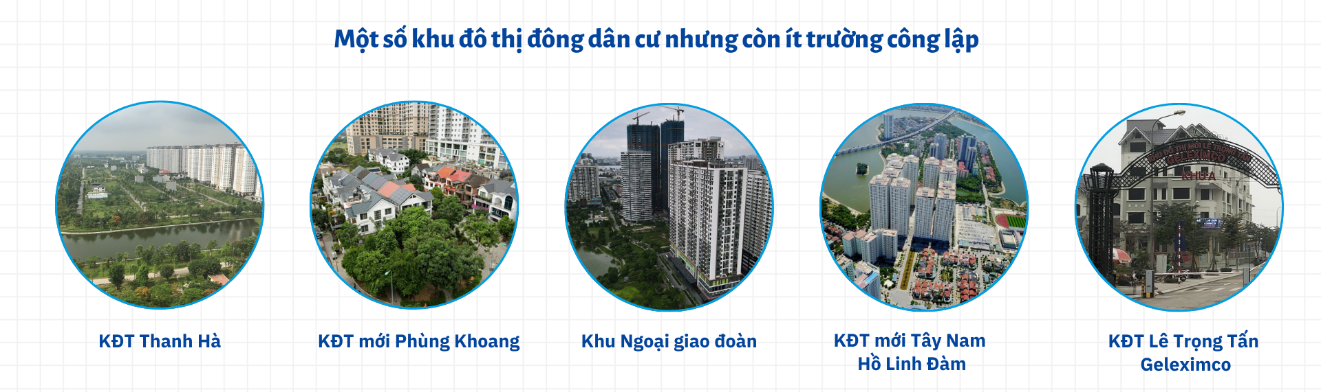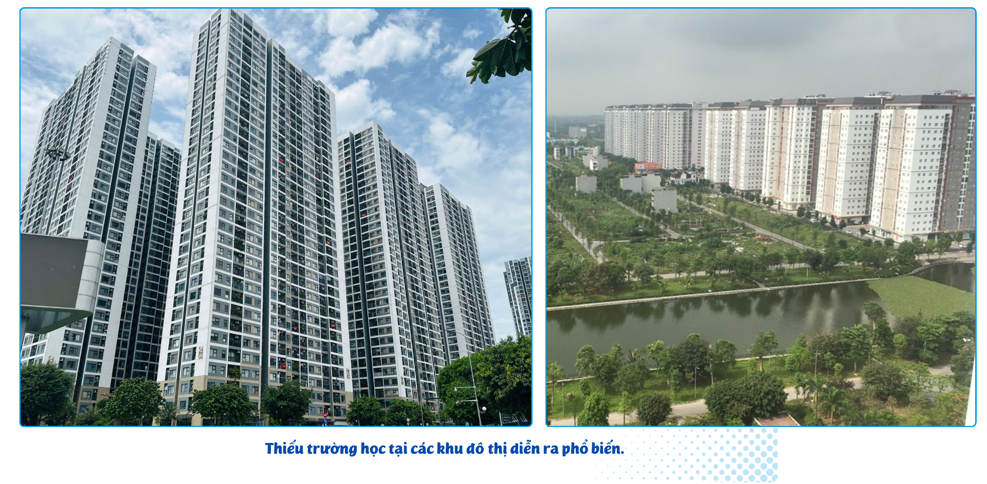 Tại một báo cáo giải trình của Sở GD&ĐT Hà Nội gửi UBND TP năm 2020 có điểm gần 20 dự án khu đô thị, nhà ở chưa xây dựng trường học theo quy hoạch bảo đảm đồng bộ với phát triển dân số, đó là các dự án thuộc một số quận (huyện): Nam Từ Liêm, Bắc Từ Liêm, Hoàng Mai, Hà Đông, Hoài Đức, Thanh Oai, Thanh Trì…