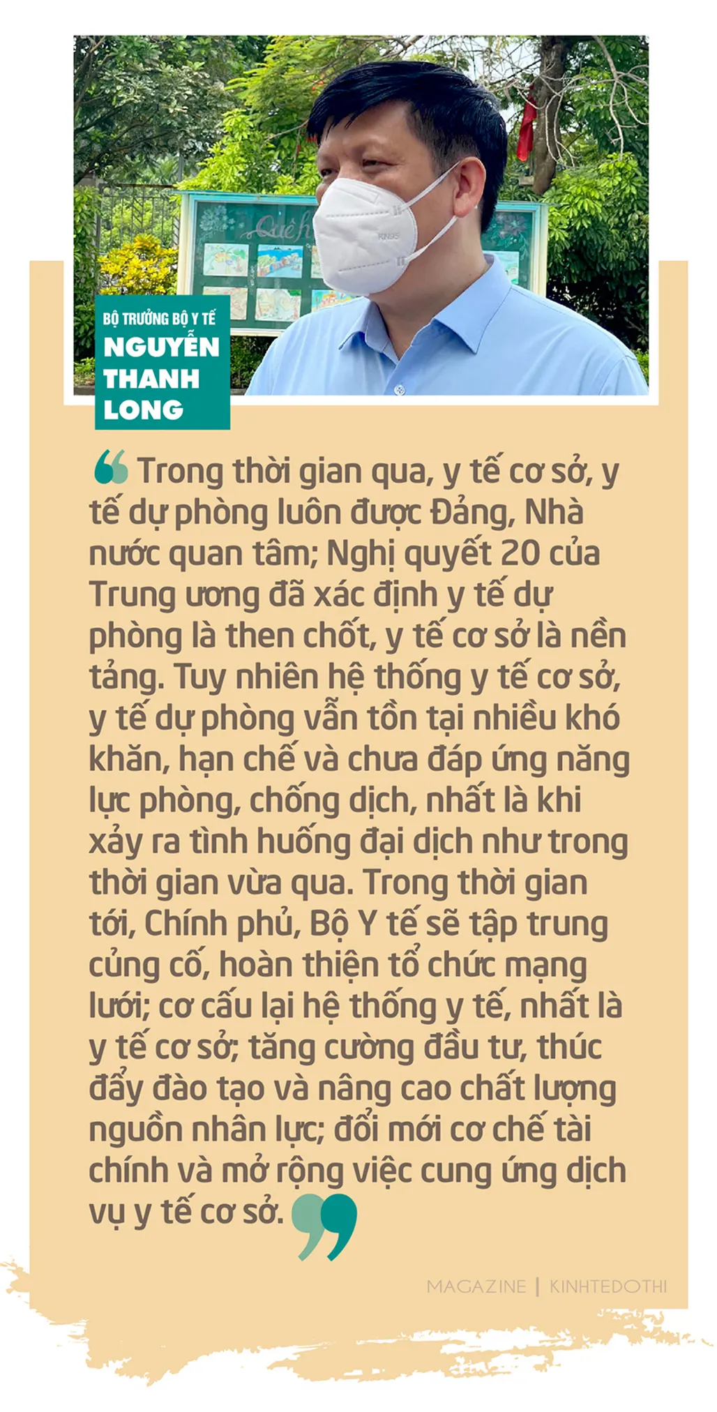 Khi dịch Covid-19 bùng phát đã bộc lộ rõ nhiều bất cập, vừa mỏng về nhân lực vừa thiếu về trang thiết bị. Đó là chưa kể đến các dịch bệnh lưu hành hàng năm như sốt xuất huyết, thủy đậu, sởi, tay chân miệng… y tế cơ sở đều phải tham gia. Nào là thứ Tư hàng tuần, tiêm chủng, khám thai. Còn lại khám bệnh không lây nhiễm 300 bệnh nhân/tháng, ngoài ra kiểm soát an toàn vệ sinh thực phẩm, các chương trình chống mù loà, tai nạn thương tích… đều là các nội dung trong 35 chương trình y tế quốc gia mà TYT phải quản lý.