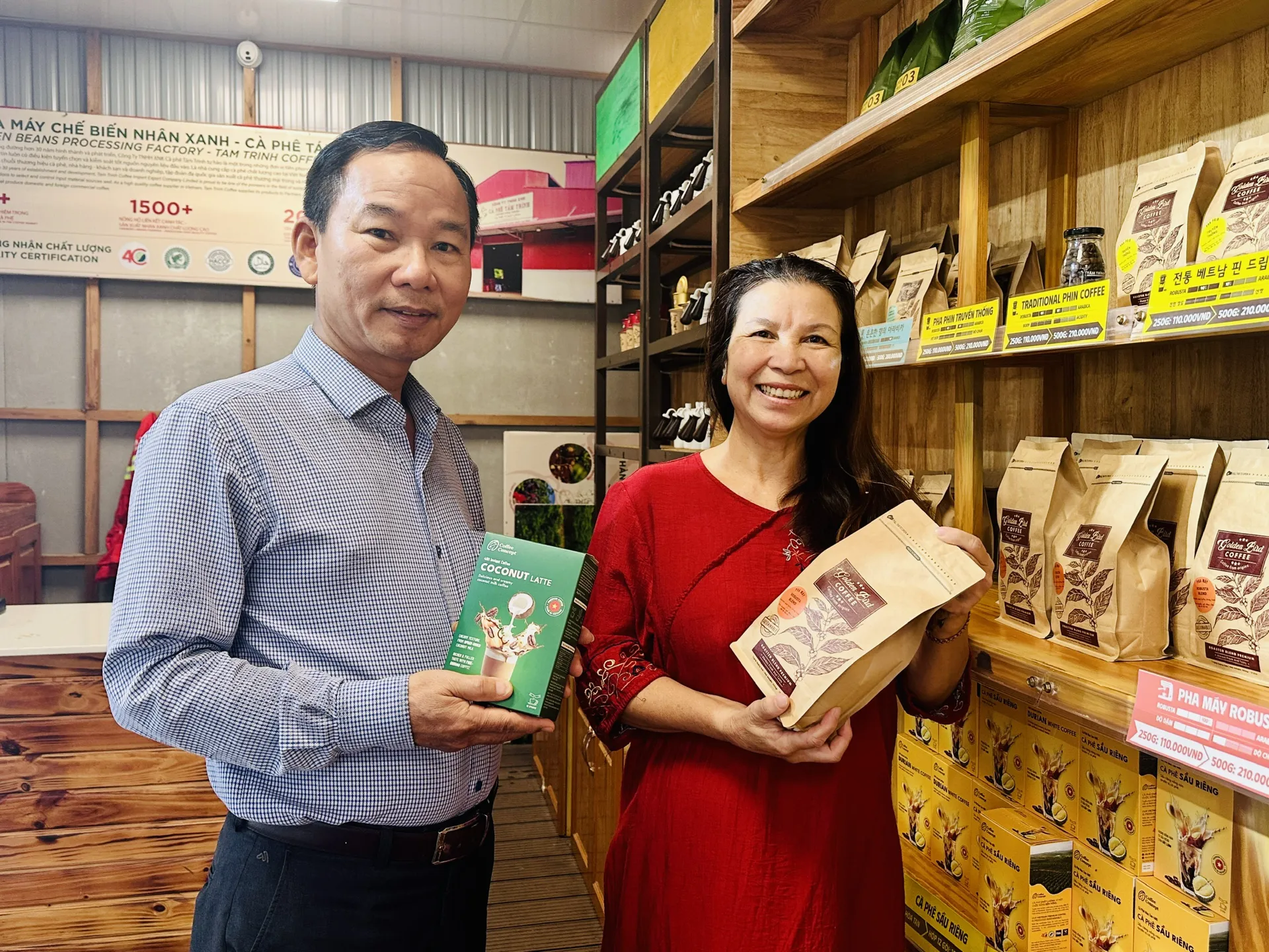 Cũng trong dịp này, chúng tôi có cơ hội trò chuyện với anh Đoàn Mạnh Trình và chị Nguyễn Thị Tám, chủ Công ty TNHH xuất nhập khẩu cà phê Tám Trình – một doanh nghiệp nổi tiếng tại Lâm Đồng chuyên xuất nhập khẩu và sản xuất cà phê bột, đồng thời kết hợp mô hình du lịch trải nghiệm.