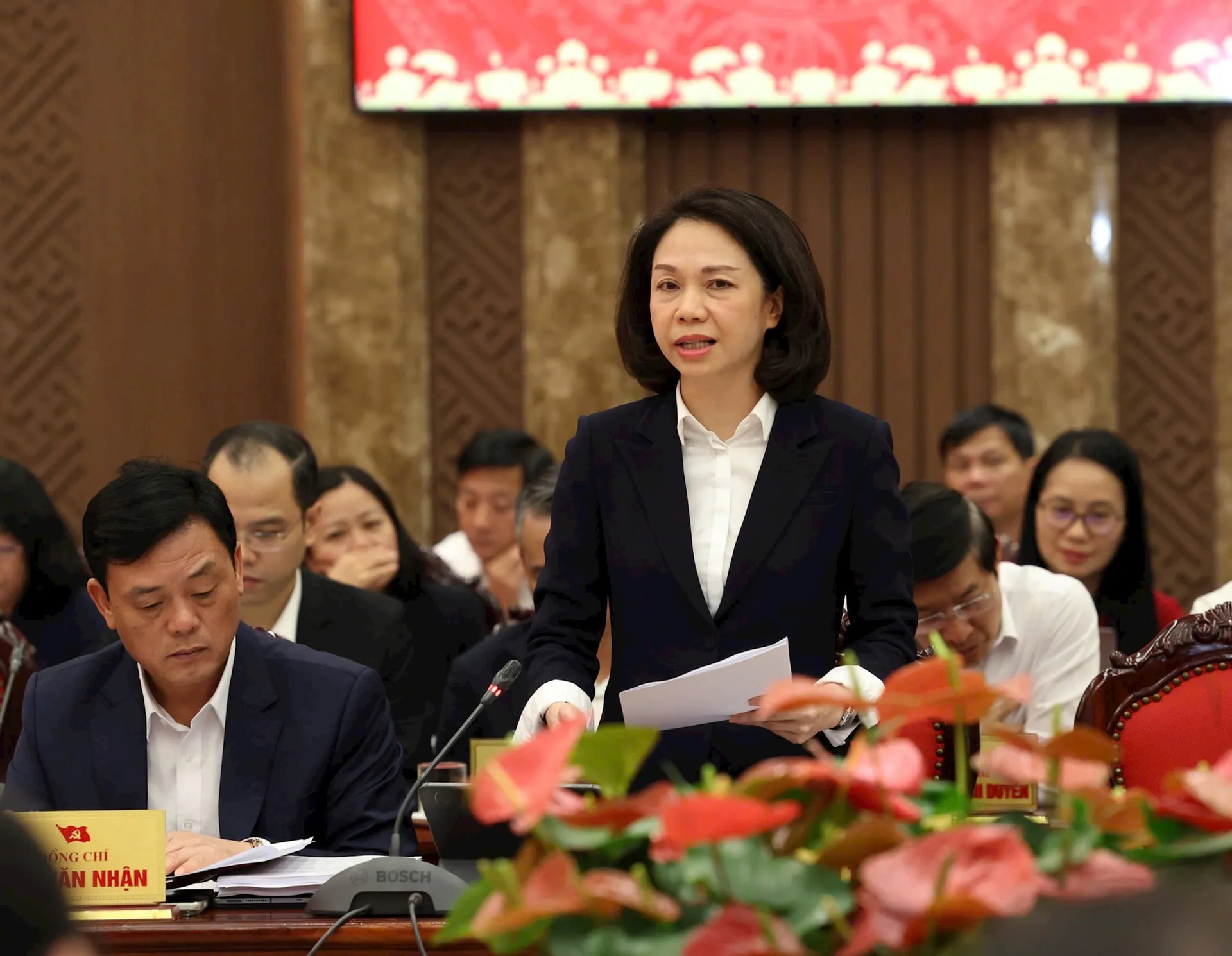 Phó Chủ tịch UBND thành phố Hà Nội Vũ Thu Hà phát biểu thảo luận.