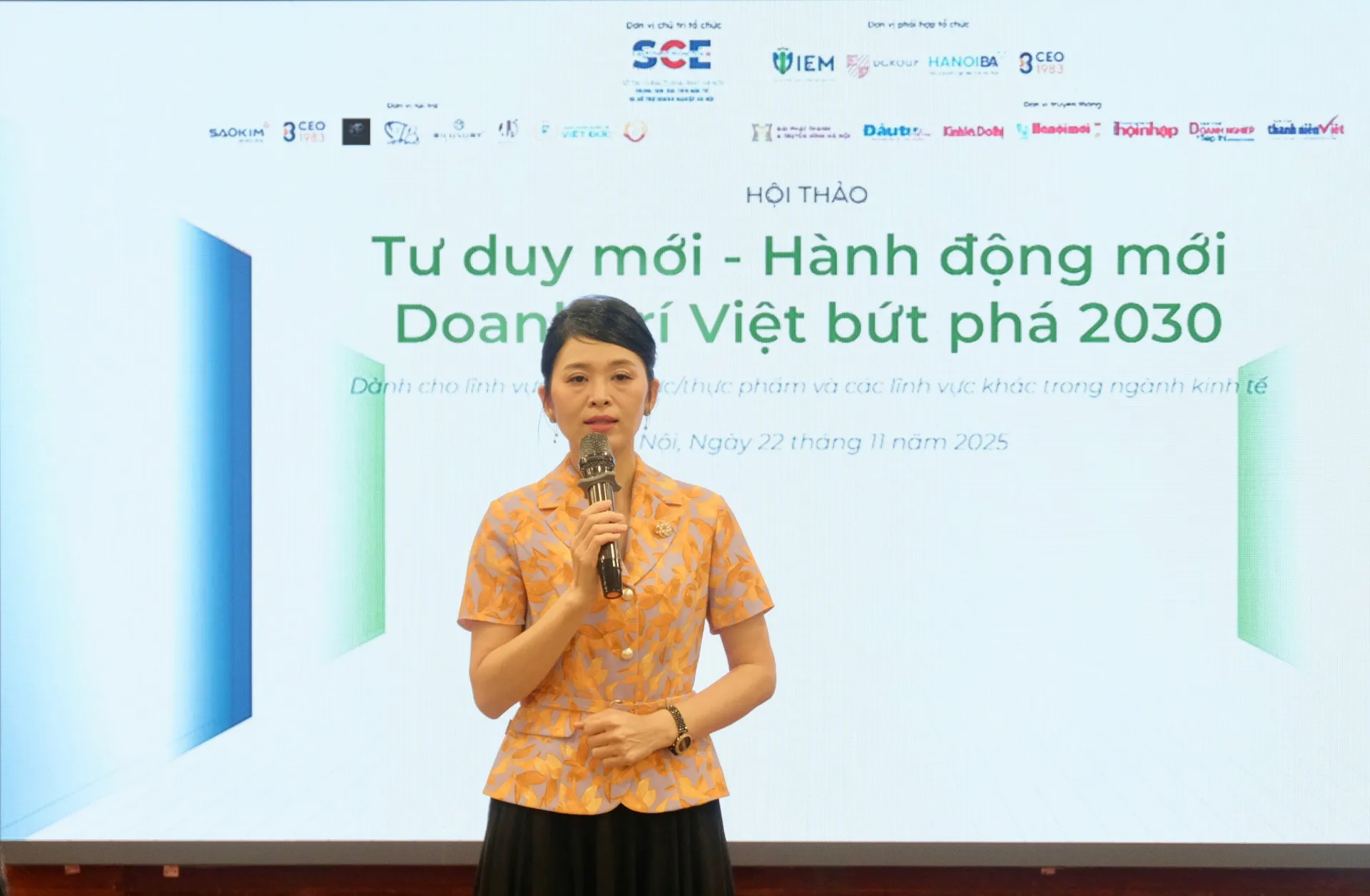 Phát biểu tại Hội thảo, ThS Lê Dung - Viện trưởng Viện Doanh Trí cho biết, thông qua Hội thảo với chủ đề “Tư duy mới - Hành động mới: Doanh Trí Việt bứt phá 2030”, Viện Doanh Trí mong muốn tăng cường kết nối cộng đồng doanh nhân - chuyên gia - học giả, tạo nền tảng cho những sáng kiến hợp tác mới.