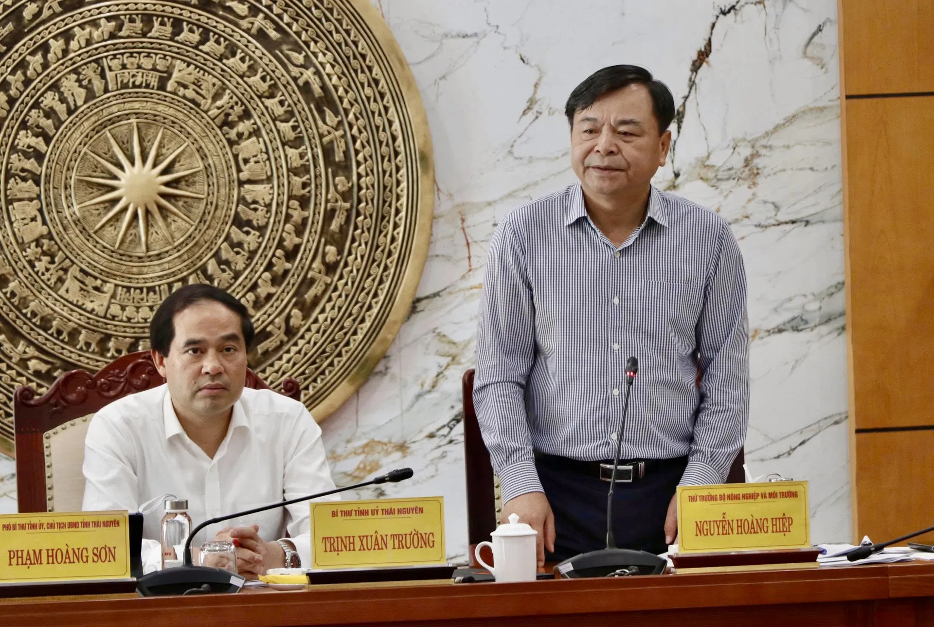 Phát biểu tại cuộc làm việc, Thứ trưởng Bộ Nông nghiệp và Môi trường Nguyễn Hoàng Hiệp cho rằng, vấn đề ngập lụt của Thái Nguyên chỉ giải quyết được khi đặt trong tổng thể các tỉnh lưu lực sông Cầu.