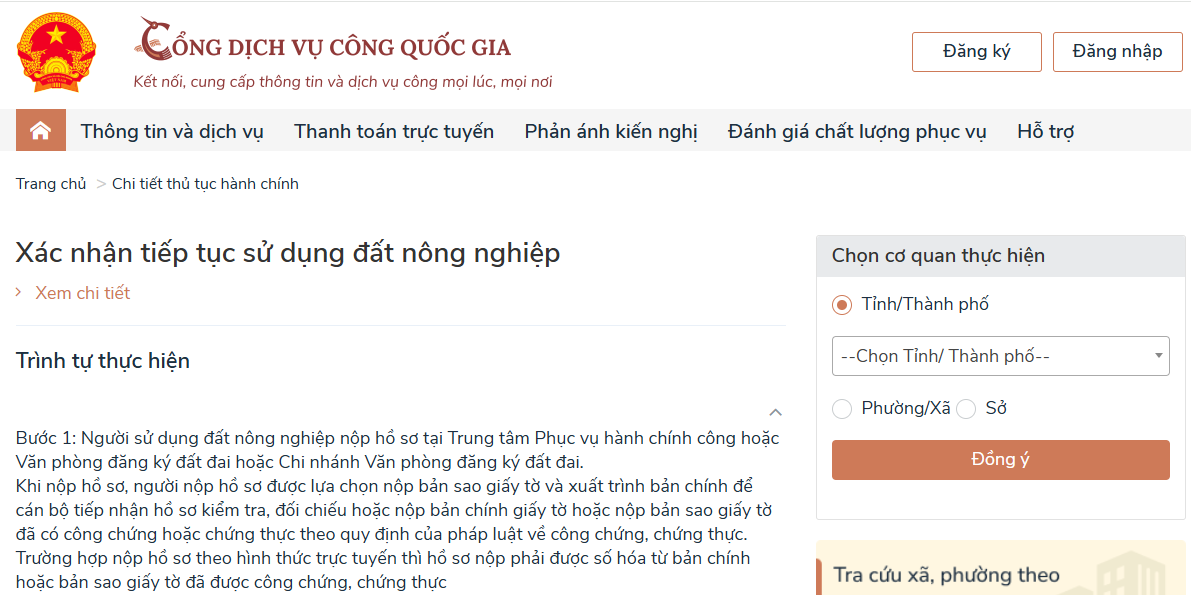 Trình tự, thủ tục xác nhận tiếp tục sử dụng đất nông nghiệp