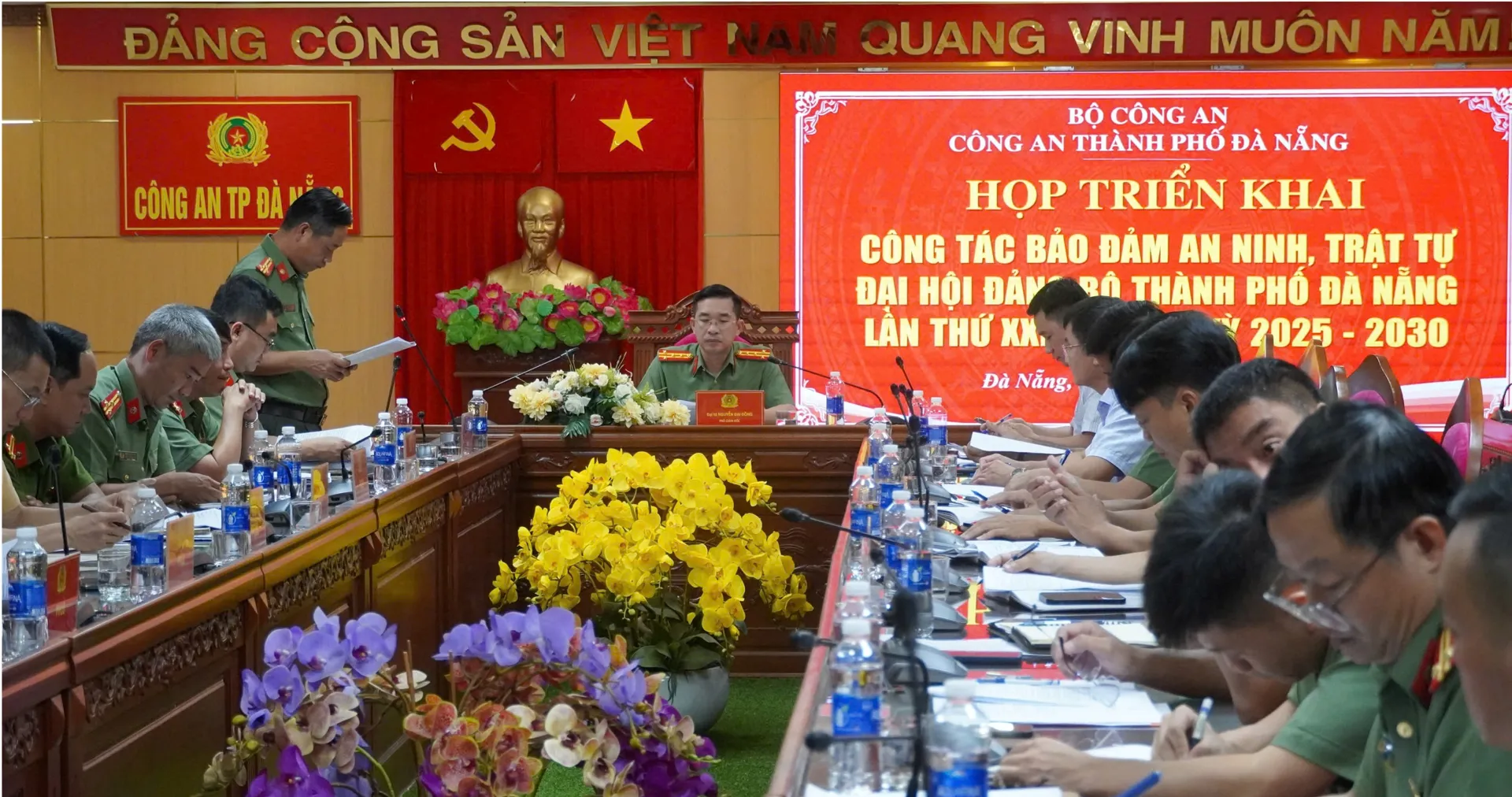 Công an thành phố Đà Nẵng họp triển khai công tác bảo đảm an ninh, trật tự Đại hội đại biểu lần thứ I Đảng bộ thành phố Đà Nẵng (nhiệm kỳ 2025-2030). Ảnh: Cổng thông tin điện tử thành phố Đà Nẵng.