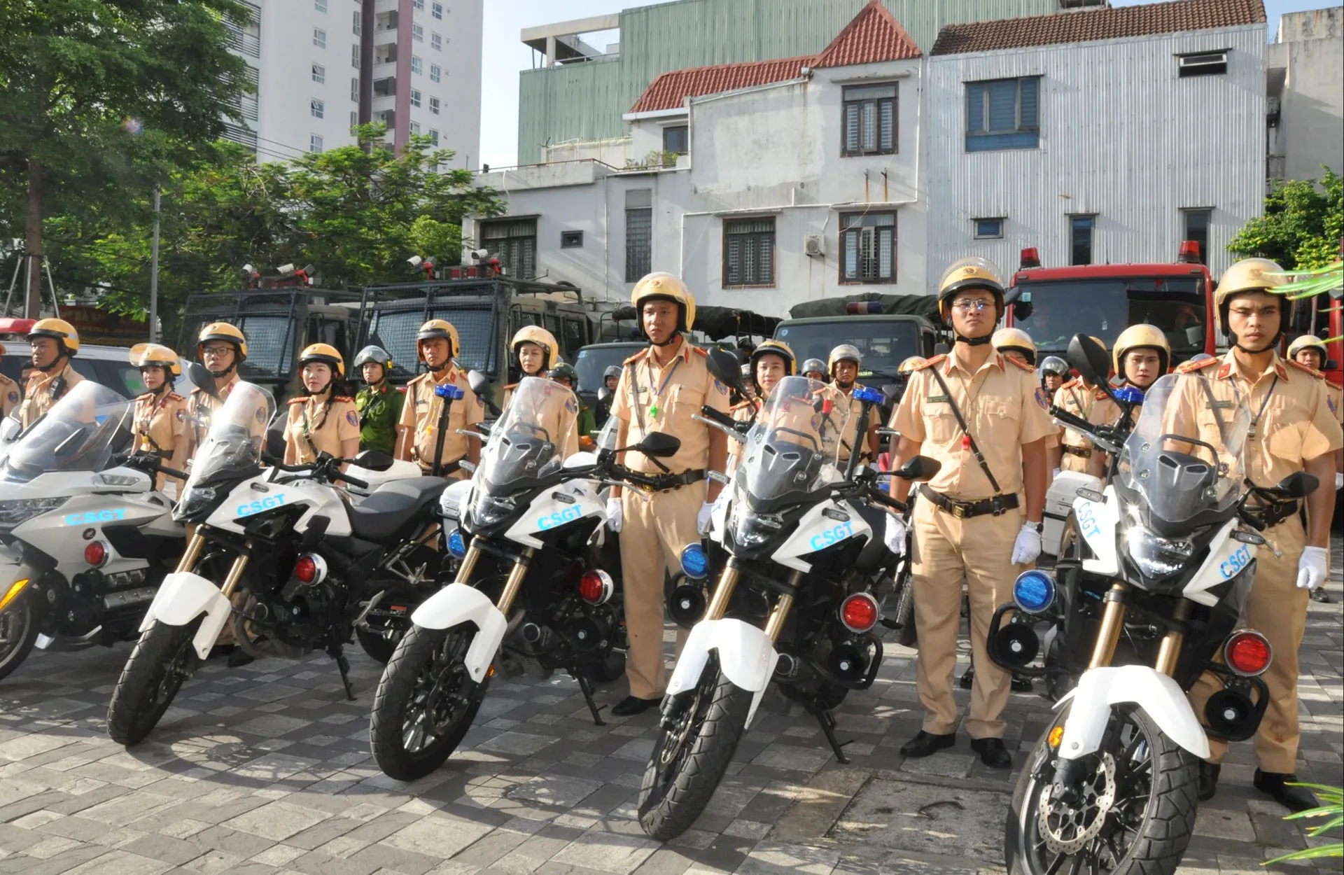 Lực lượng Cảnh sát cơ động (Công an thành phố Đà Nẵng) tuần tra kiểm soát, bảo đảm an ninh trật tự trên các tuyến đường. Ảnh: Lê Hùng