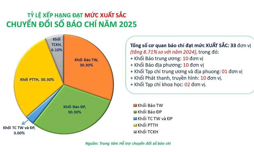 Cụ thể, tại bảng đánh giá Mức độ trưởng thành Chuyển đổi số báo chí năm 2025, Khối báo địa phương của Bộ Văn hóa, Thể thao và Du lịch, bên cạnh Báo Kinh tế & Đô thị được vinh danh là cơ quan báo chí được xếp hạng xuất sắc còn có có các đơn vị như: Báo và Phát thanh, truyền hình Nghệ An; Báo Phụ nữ Thành phố Hồ Chí Minh; Báo Tuổi trẻ; Báo Người Lao động; Báo và Phát thanh, truyền hình Khánh Hòa; Báo và Phát thanh, truyền hình Lâm Đồng; Báo và Phát thanh, truyền hình Phú Thọ; Báo và Phát thanh, truyền hình Tuyên Quang; Báo và Phát thanh, truyền hình Lào Cai.
