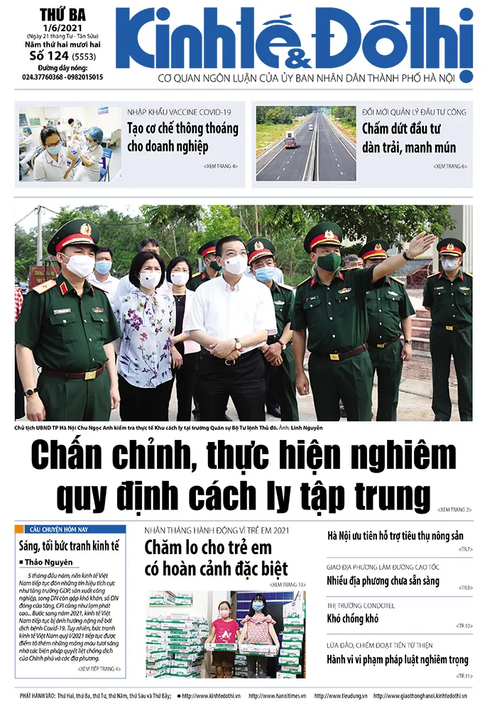 Kinhtedothi - Chủ tịch UBND TP Hà Nội Chu Ngọc Anh: Rà soát xét nghiệm, giảm mật độ công dân trong khu cách ly; Chấn chỉnh, thực hiện nghiêm quy định cách ly tập trung; Món quà tinh thần cho thiếu nhi… là những tin tổng hợp hấp dẫn nhất trên số báo in 124 ra ngày 1/6/2021.