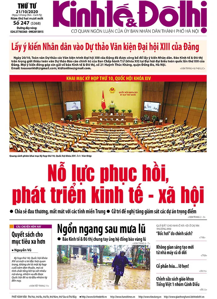 | Trang nhất số 247 - Báo in Kinh tế & Đô thị ra ngày 21/10/2020 |