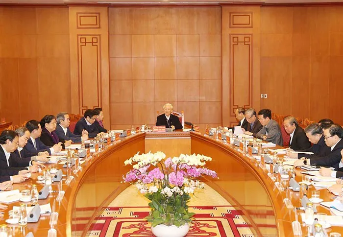 | Tổng Bí thư, Chủ tịch nước Nguyễn Phú Trọng, Trưởng Tiểu ban Văn kiện Đại hội XIII của Đảng phát biểu kết luận cuộc họp, ngày 82. Ảnh: Trí Dũng |