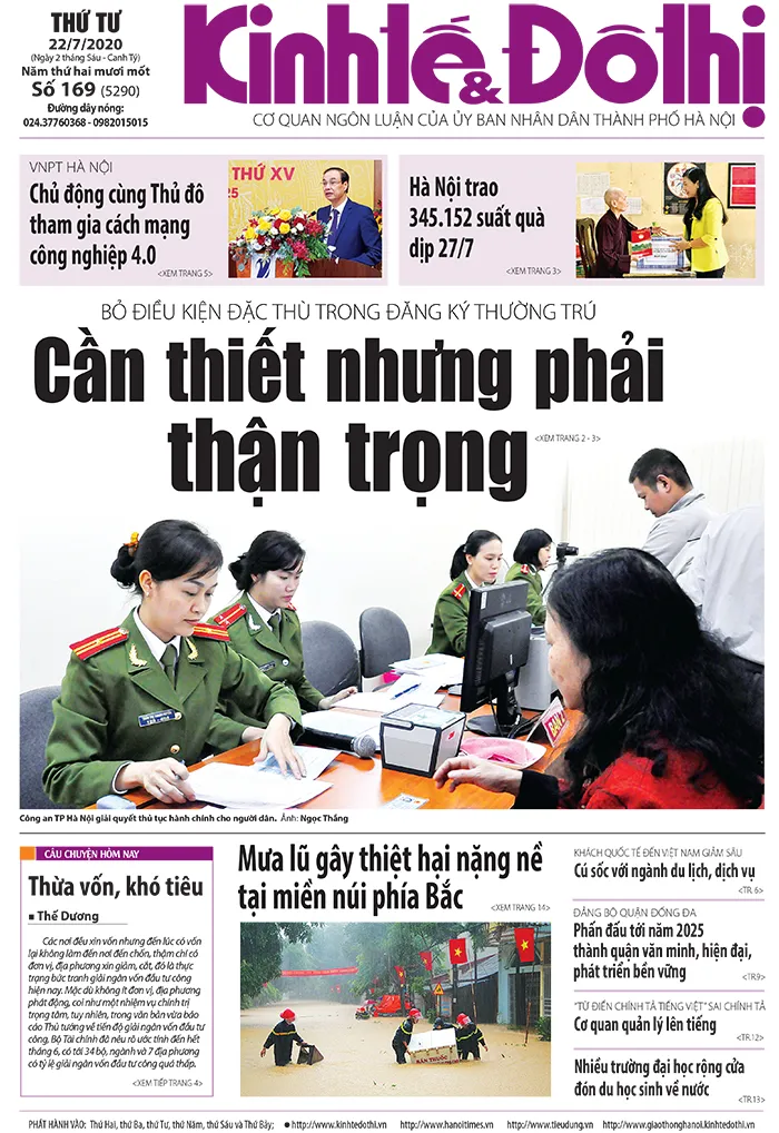 Kinhtedothi - Bỏ điều kiện đặc thù trong đăng ký thường trú: Cần thiết nhưng cần phải thận trọng; Hà Nội trao 345.152 suất quà cho người có công dịp 27/7… là những tin tổng hợp hấp dẫn nhất trên báo in Kinh tế & Đô thị ra ngày 22/7/2020.