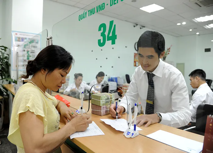 | Khách hàng giao dịch tại VietcomBank chi nhánh Hà Nội. Ảnh: Thanh Hải |