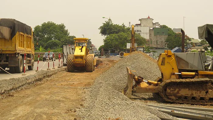 | Nhà thầu đang gấp rút thi công các hạng mục dự án xây dựng mở rộng Quốc lộ 1A đoạn đi qua huyện Thường Tín |