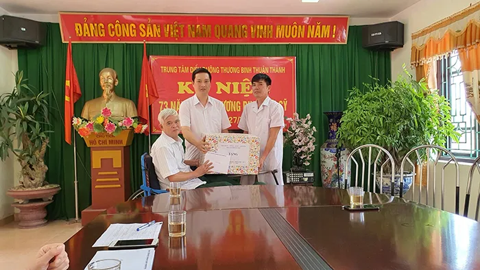 | Phó Giám đốc Sở LĐTB&XH Hà Nội Nguyễn Quốc Khánh thăm hỏi, tặng quà cho người có công dịp 2772020. Ảnh: Oanh Trần |