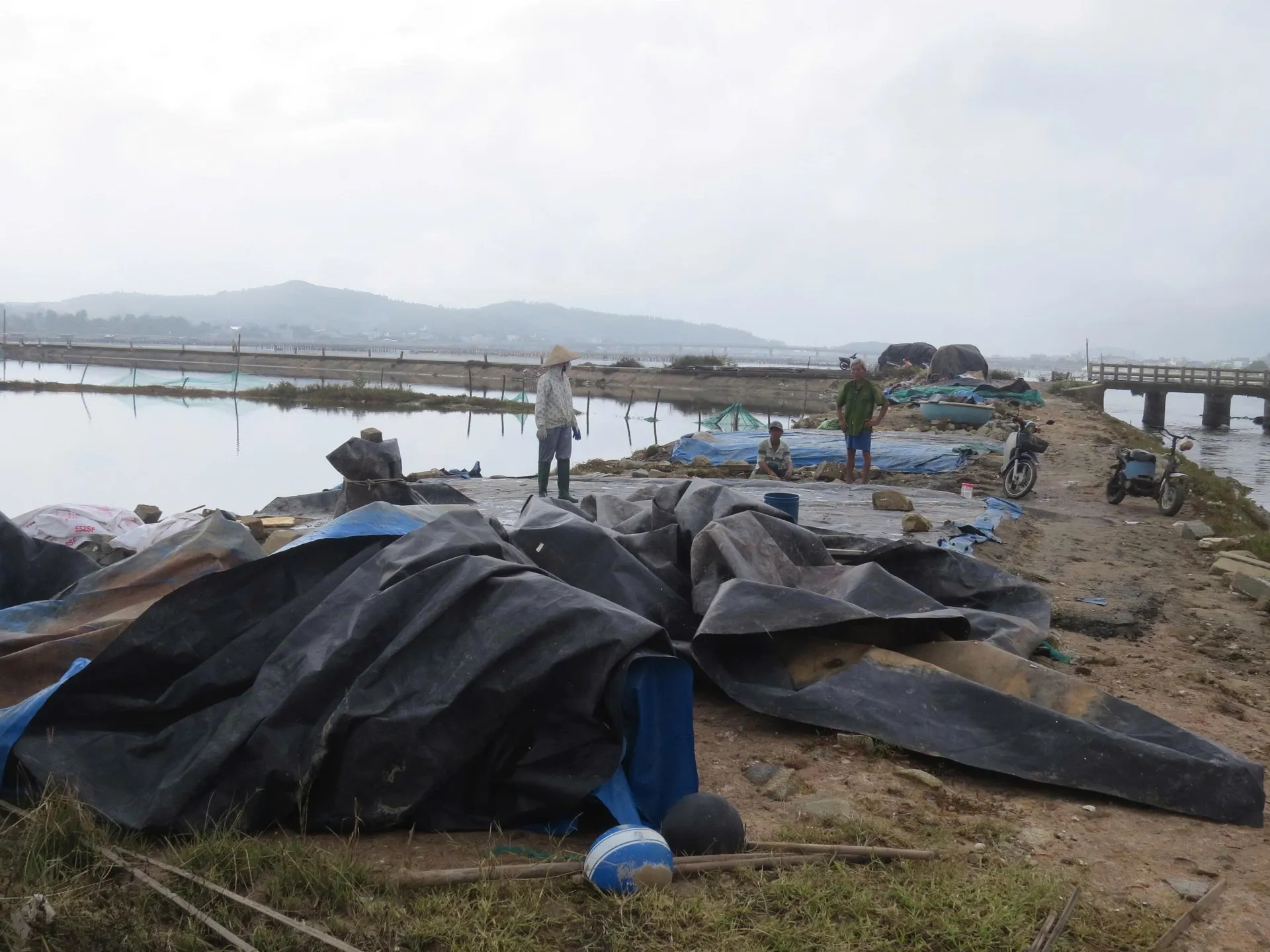 Đồng muối Sa Huỳnh tan hoang sau bão.