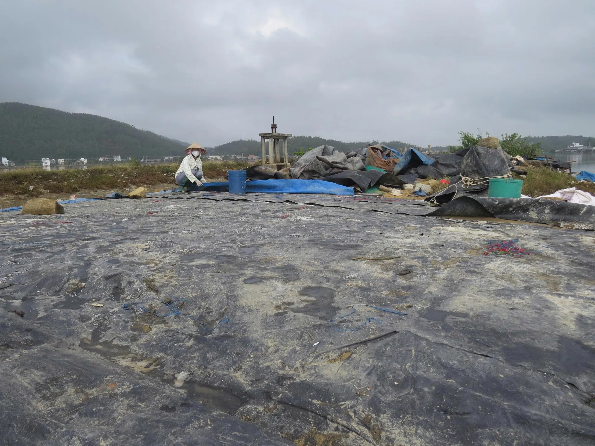 Không chỉ muối, những tấm bạt trải ruộng cũng bị nước biển cuốn rách, tăng thêm tổn thất cho diêm dân. Sau bão, nhiều người ra đồng lượm lại bạt mà chẳng tấm nào còn nguyên. Mỗi ô ruộng 50m² cần 3 triệu đồng để mua bạt mới. Như ông Lệ, 18 ô thì phải tốn 54 triệu đồng.
