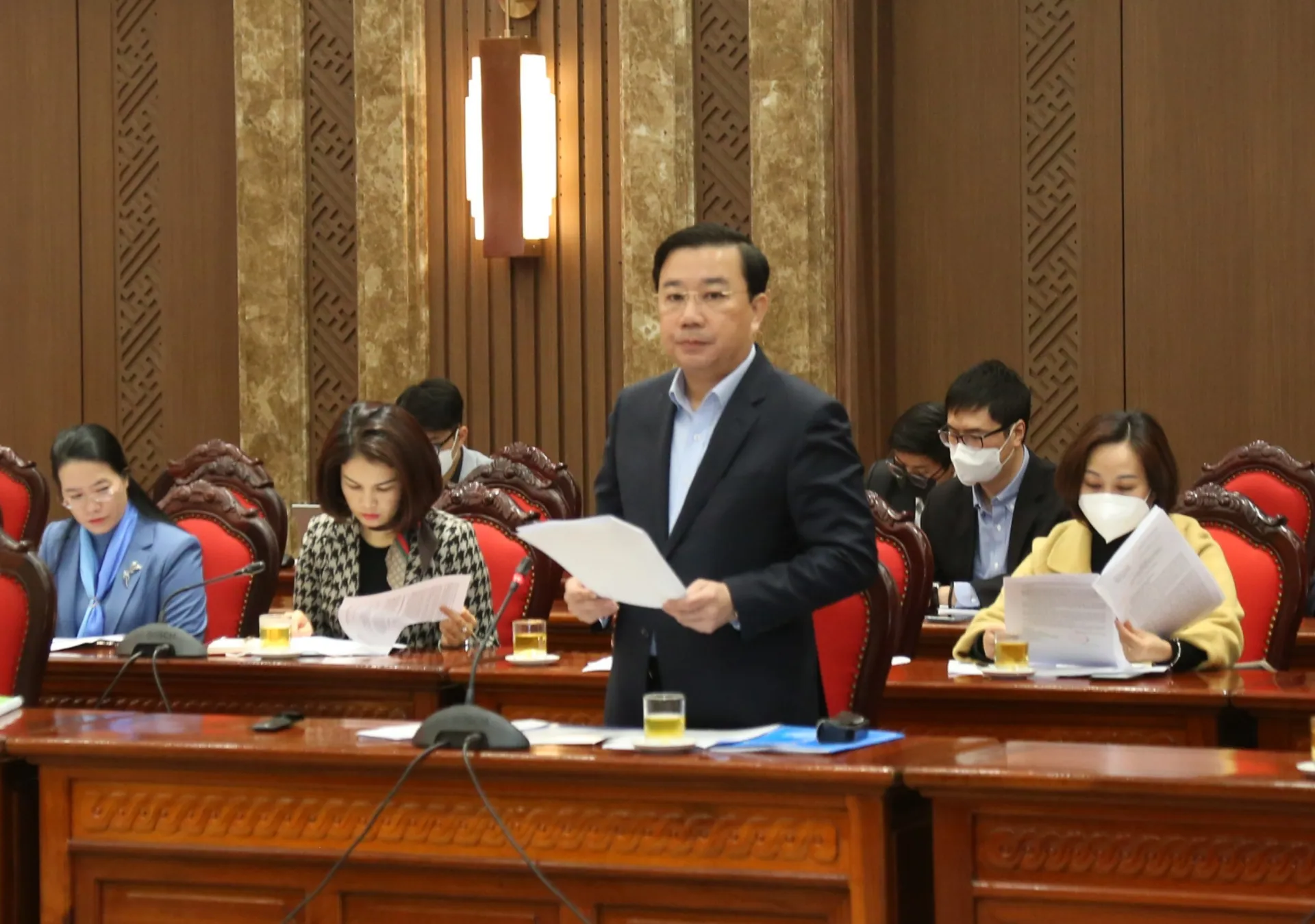 Về sản xuất nông nghiệp, Bí thư Thành ủy yêu cầu các cấp, các ngành và địa phương phải bảo đảm cung cấp đủ nước cho gieo trồng vụ xuân kịp thời vụ, bảo đảm chất lượng; rà soát, triển khai quyết liệt 45 cụm công nghiệp gắn với thúc đẩy sản xuất làng nghề.