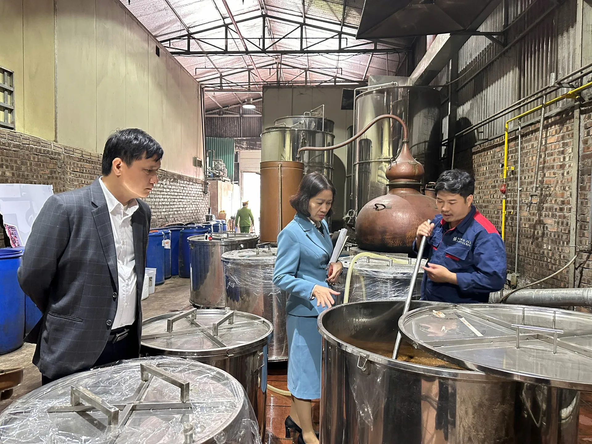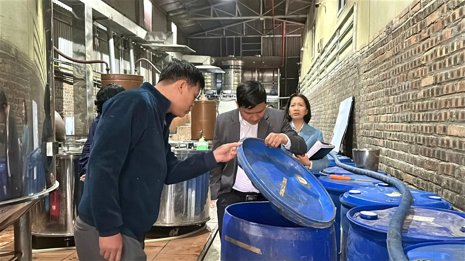 Đoàn kiểm tra của xã Bát Tràng đi kiểm tra đột xuất doanh nghiệp sản xuất rượu trên địa bàn thôn 2 Đông Dư.