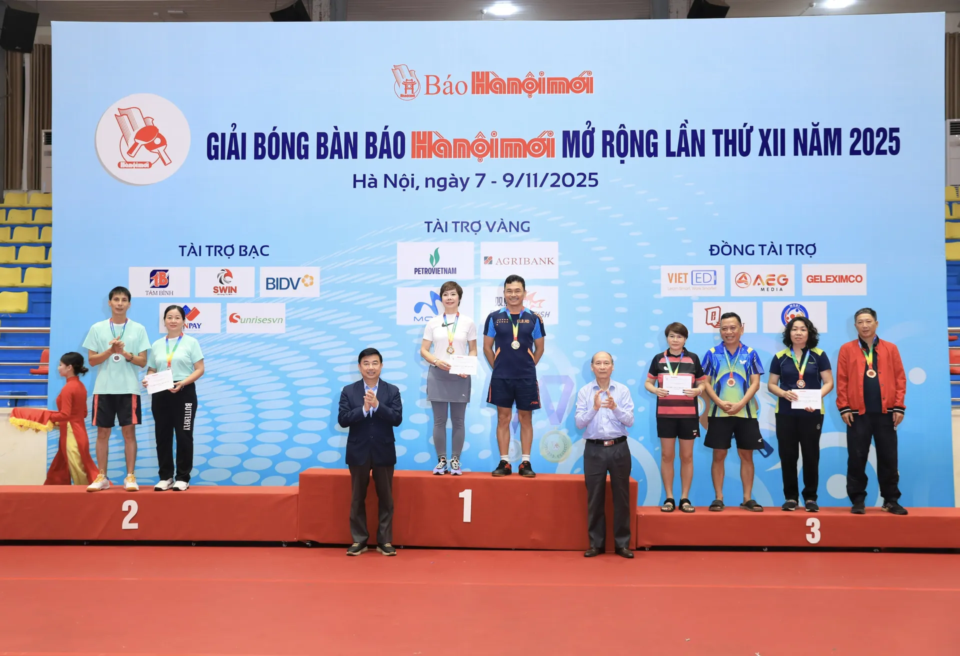 Kinhtedothi - Chiều 9/11, sau ba ngày tranh tài sôi nổi, Giải Bóng bàn Báo Hànộimới mở rộng lần thứ XII năm 2025 khép lại tại Nhà thi đấu Cầu Giấy (Hà Nội).