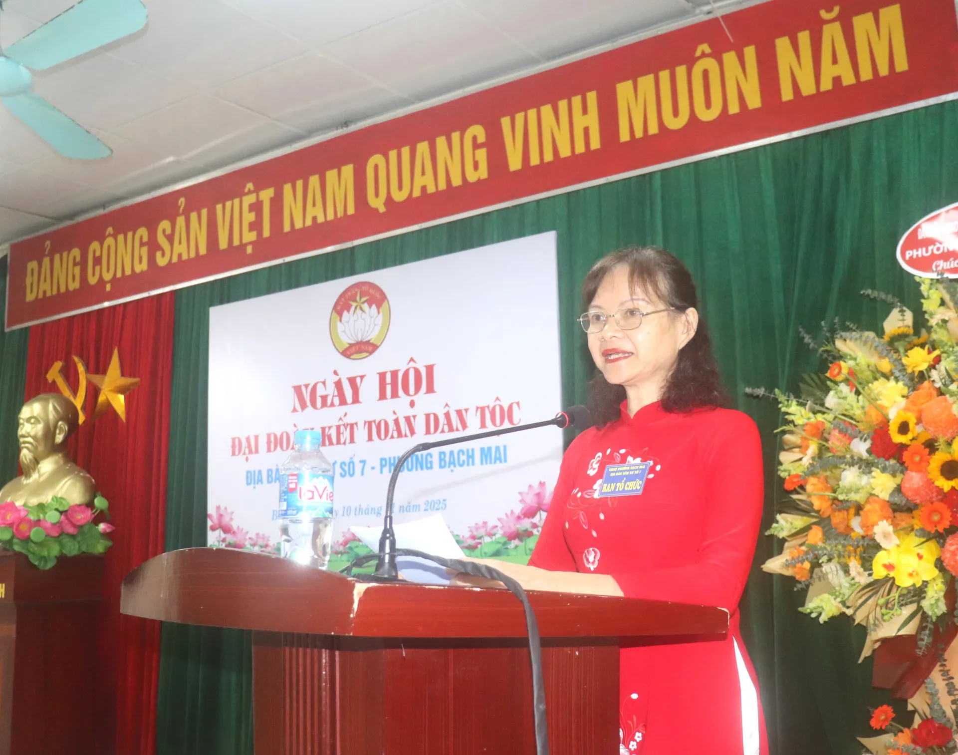 Kinhtedothi-Tại Ngày hội Đại đoàn kết toàn dân tộc, Bí thư Đảng ủy, Chủ tịch HĐND phường Bạch Mai biểu dương những kết quả đạt được năm 2025 của Địa bàn dân cư số 7 trong thực hiện Cuộc vận động “Toàn dân đoàn kết xây dựng nông thôn mới, đô thị văn minh”, góp phần xây dựng cộng đồng dân cư ngày một phát triển.
