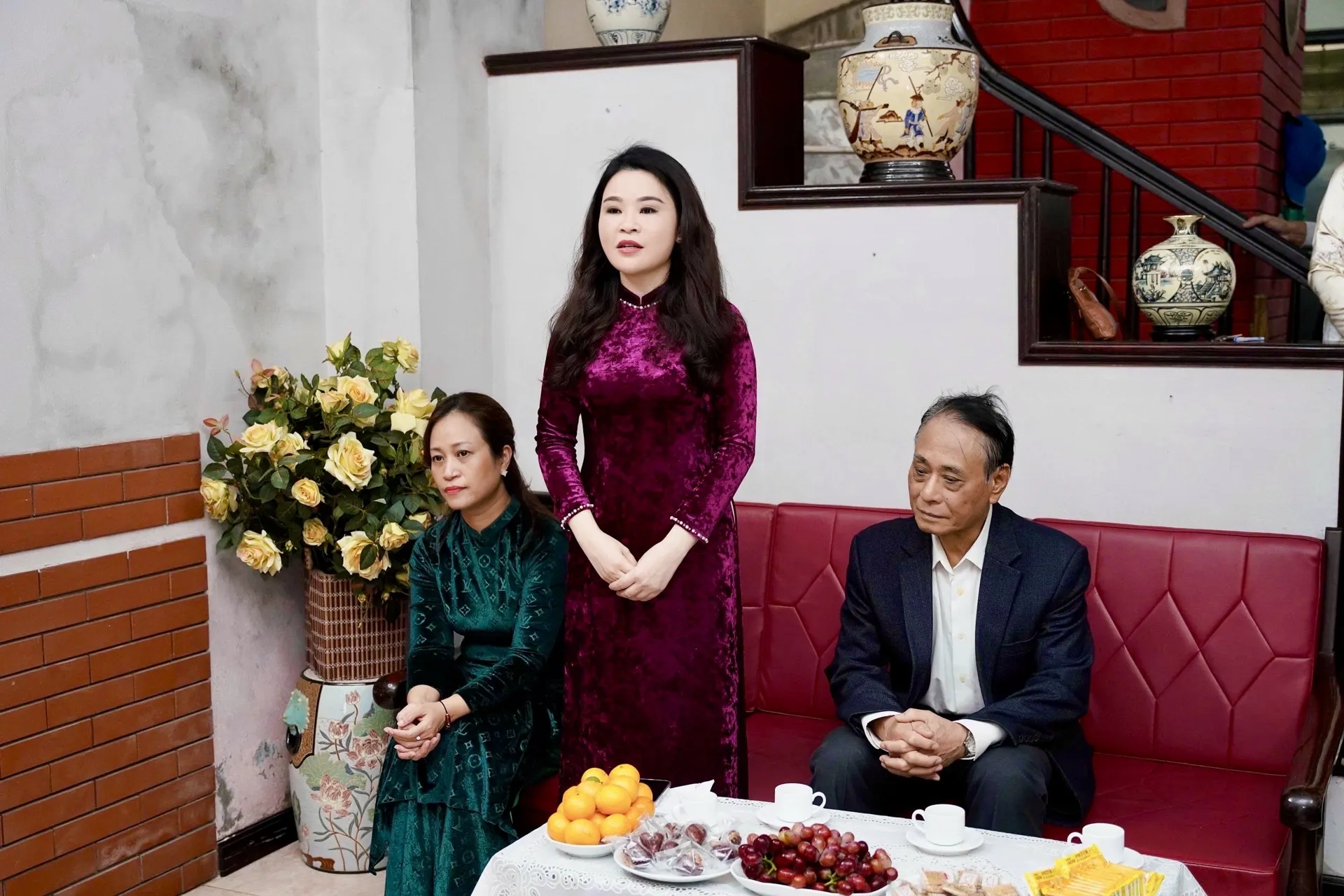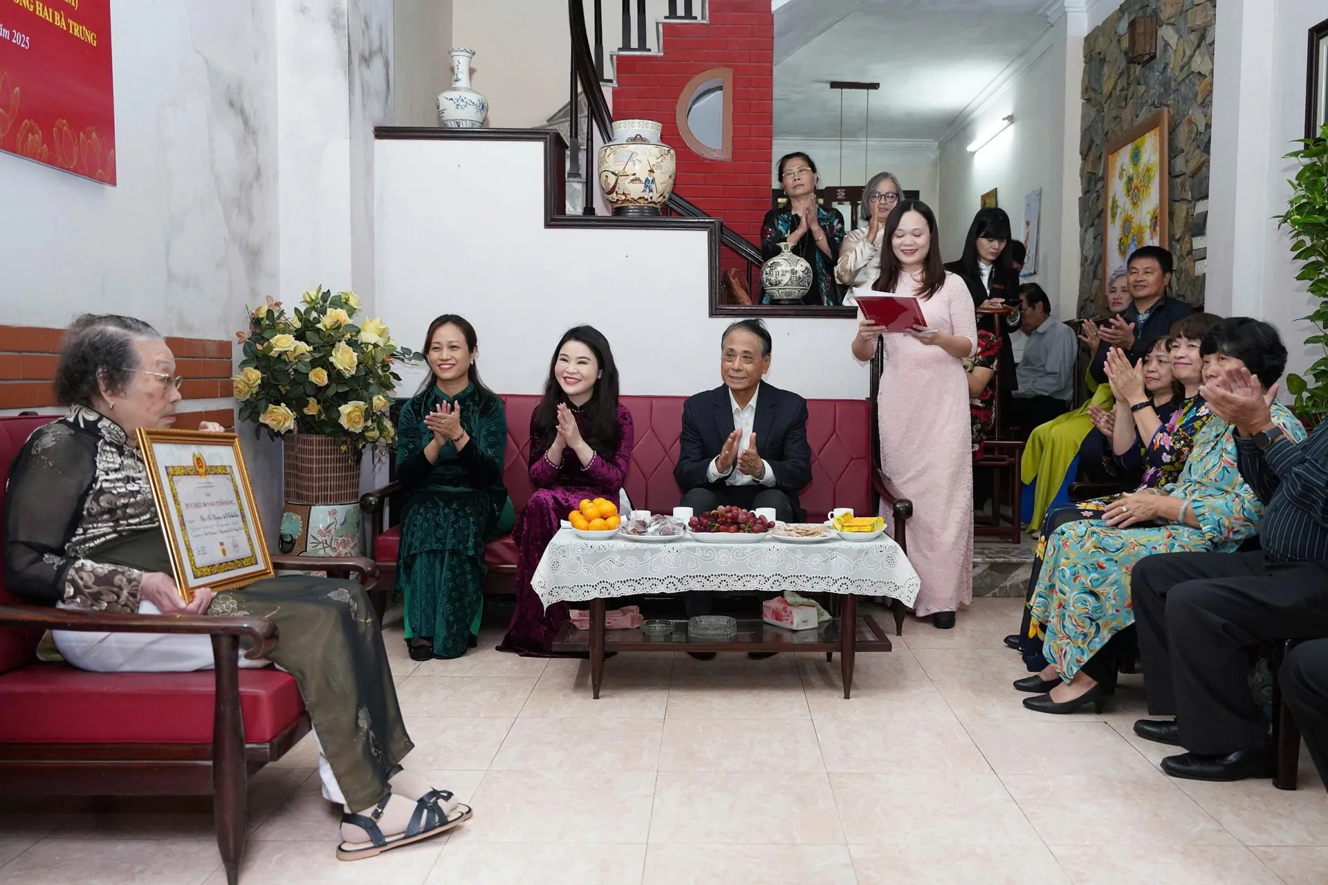 Lãnh đạo phường Hai Bà Trưng và đại diên Chi bộ Tổ dân phố chúc mừng đảng viên lão thành Bùi Thị Chương cùng gia đình