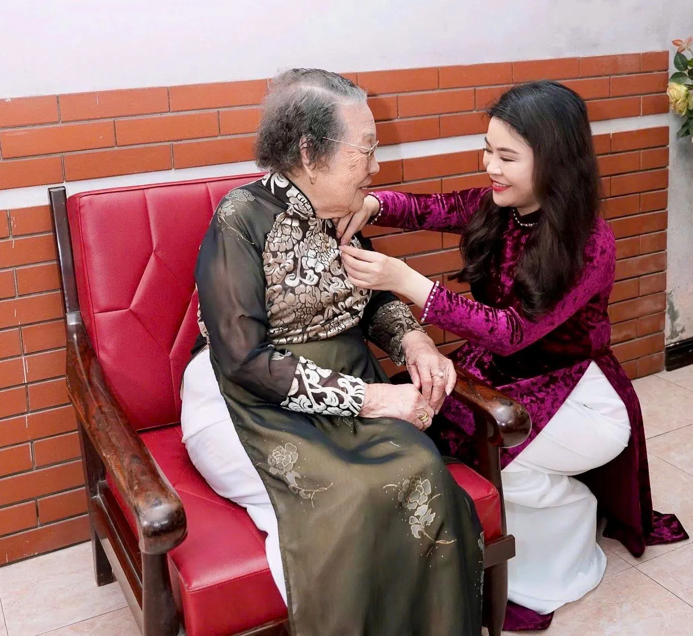 Bí thư Đảng ủy, Chủ tịch HĐND phường Hai Bà Trưng Chu Hồng Minh ân cần hỏi thăm sức khỏe, trang trọng gắn Huy hiệu 80 năm tuổi Đảng tặng đồng chí Bùi Thị Chương