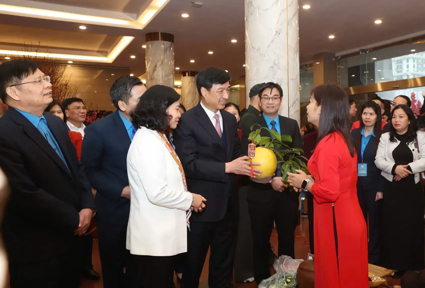 Bí thư Thành ủy Hà Nội Nguyễn Duy Ngọc và các đại biểu thăm không gian trang trí Tết của Công đoàn Thủ đô, các hoạt động Tết và trò chuyện với người lao động tại chương trình "Tết sum vầy - Xuân ơn Đảng" năm 2026