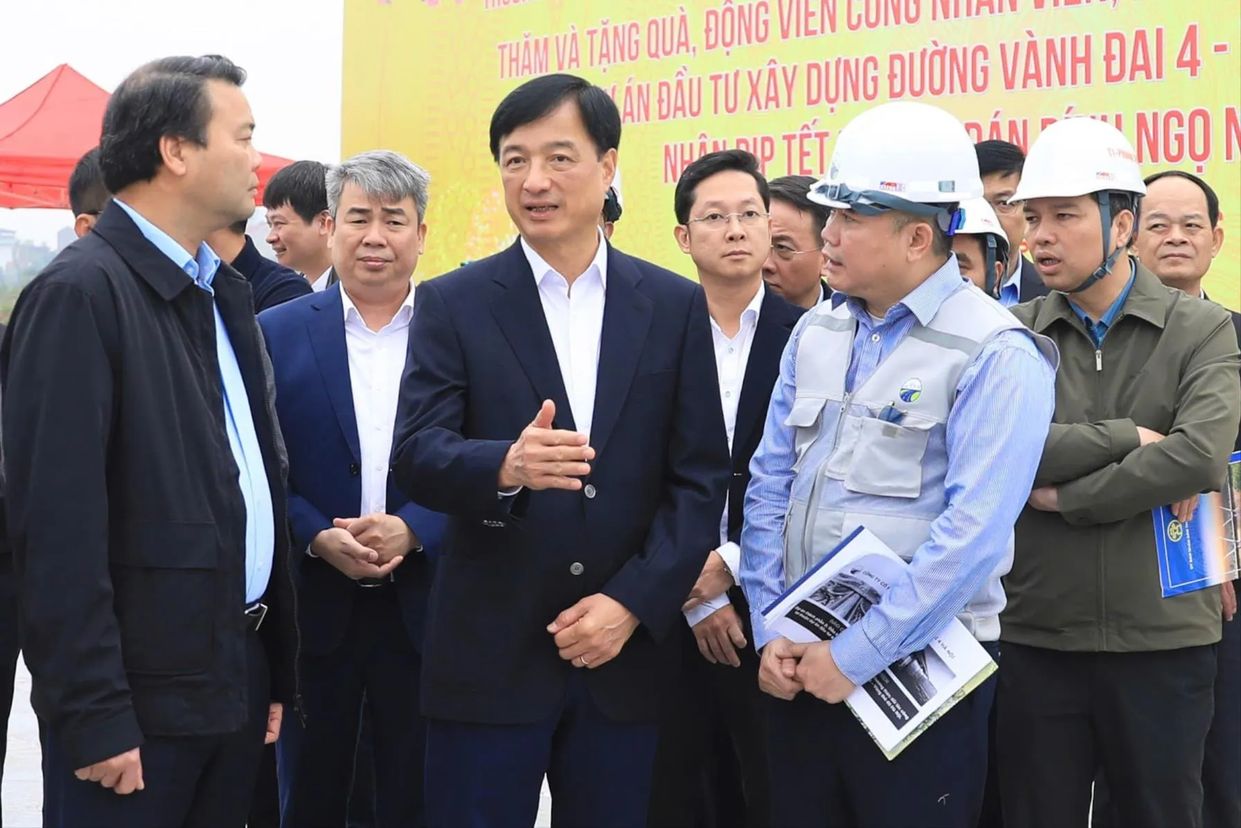 Bí thư Thành ủy đề nghị Ban Quản lý dự án và các nhà thầu quan tâm chăm lo đời sống, điều kiện làm việc cho cán bộ, kỹ sư, công nhân, đặc biệt là trong dịp Tết Nguyên đán nhằm tạo khí thế thi đua lao động trong những ngày đầu năm mới, góp phần giữ vững tiến độ chung của Dự án đường Vành đai 4 - Vùng Thủ đô.