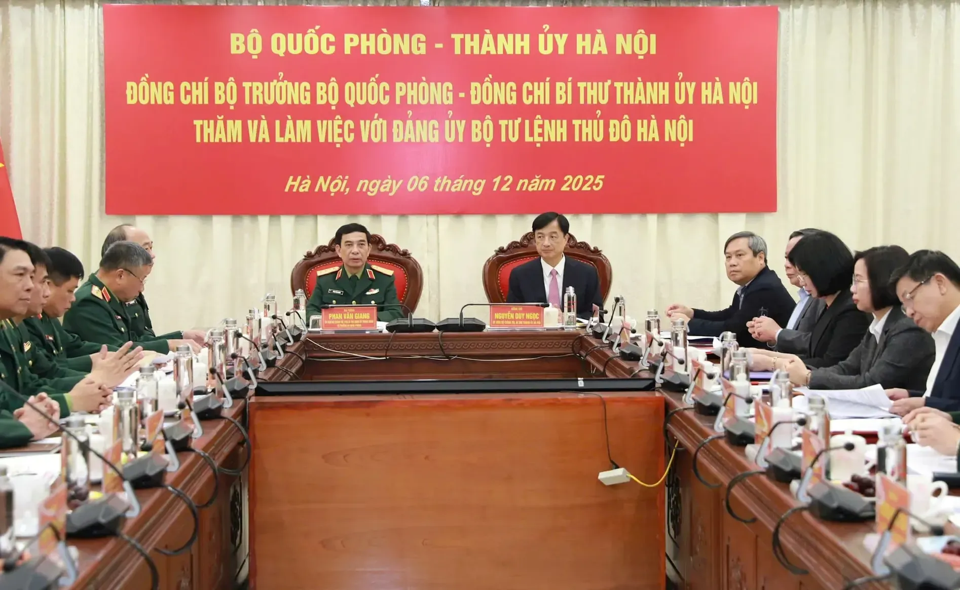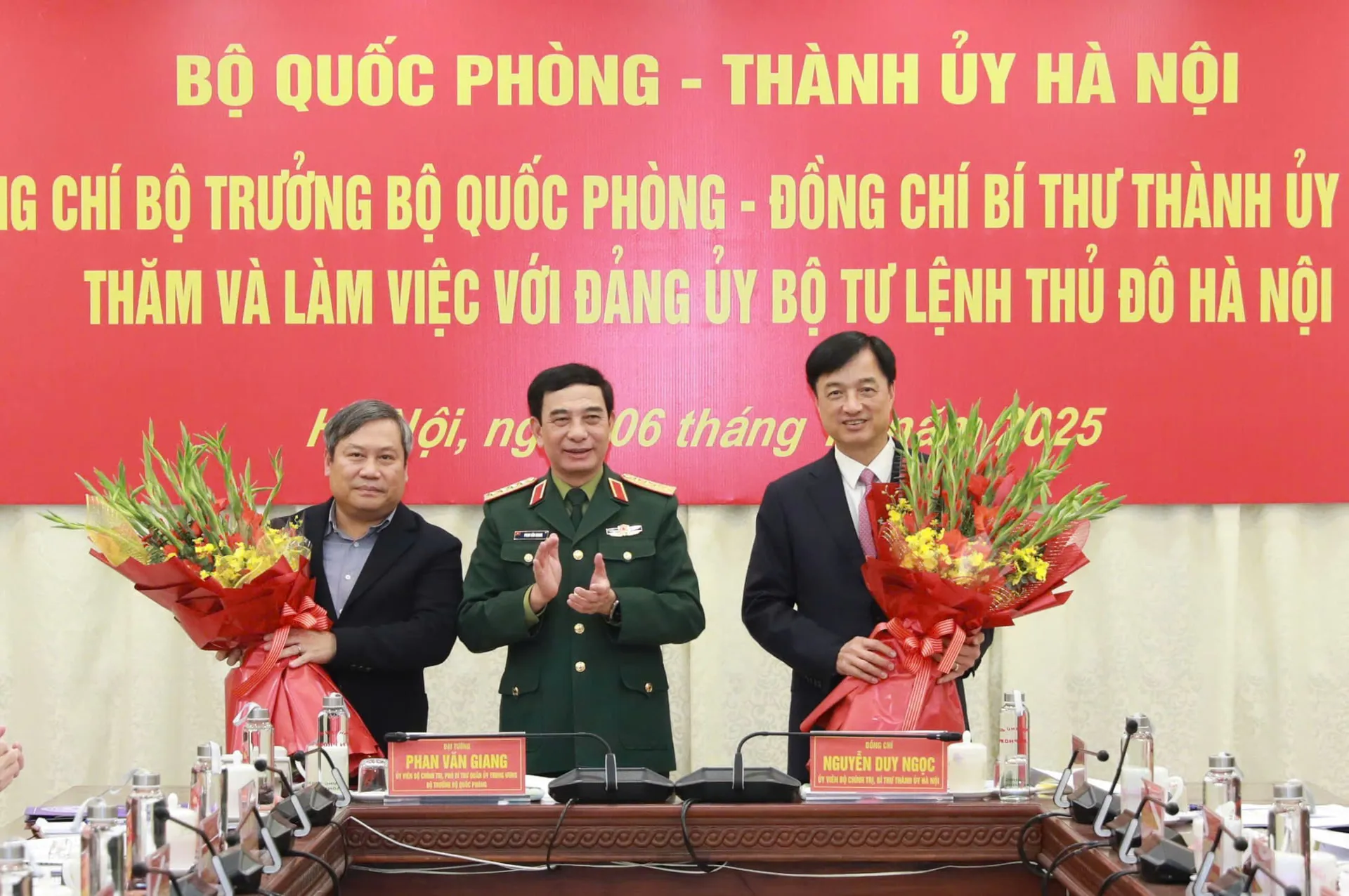 Trân trọng tiếp thu các ý kiến chỉ đạo của Bộ trưởng Bộ Quốc phòng Phan Văn Giang tại buổi làm việc, Bí thư Thành ủy Nguyễn Duy Ngọc đã thông tin một số nét khái quát về phương hướng, nhiệm vụ phát triển Thủ đô theo Nghị quyết Đại hội lần thứ XVIII Đảng bộ thành phố, xây dựng Thủ đô hiện đại, bản sắc và hòa bình, hạnh phúc. Đồng thời cũng thông tin các định hướng lớn của Thủ đô trong năm 2026; trong đó, Hà Nội đặt mục tiêu tăng trưởng GRDP từ 11% trở lên...